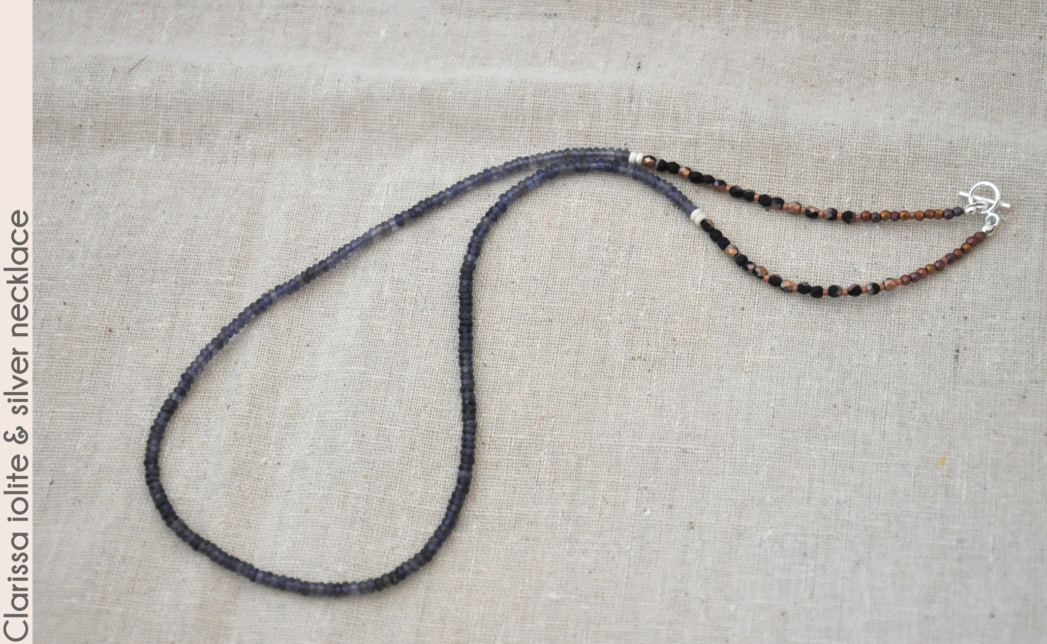 a small sterling silver toggle. Iolite is also called "water sapphire" for its color. Like Clarissa Dalloway,