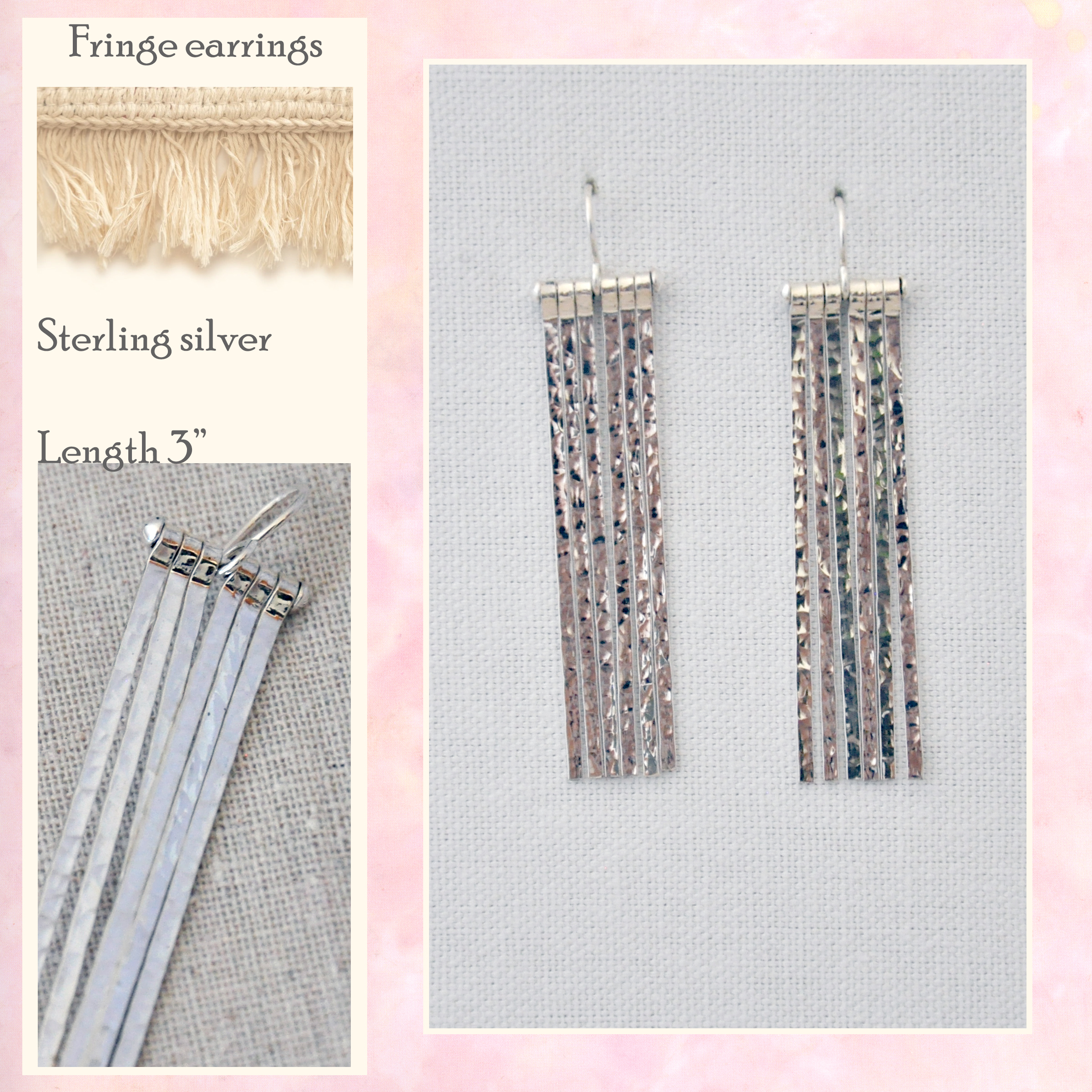 The fringe in these 3" sterling silver earrings shimmer and shine with movement, swinging freely from