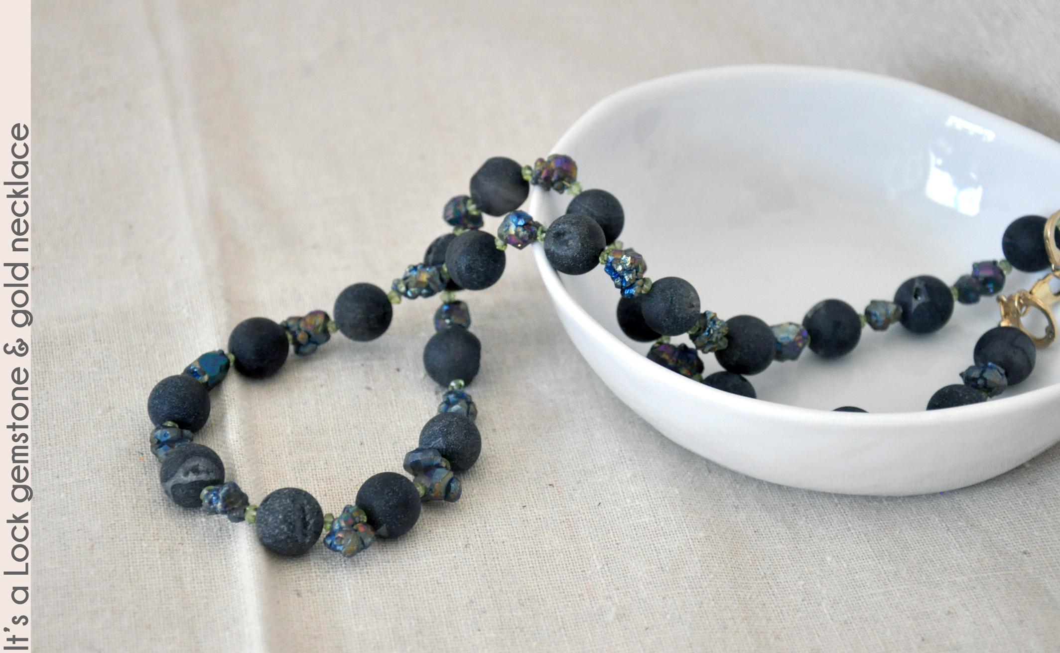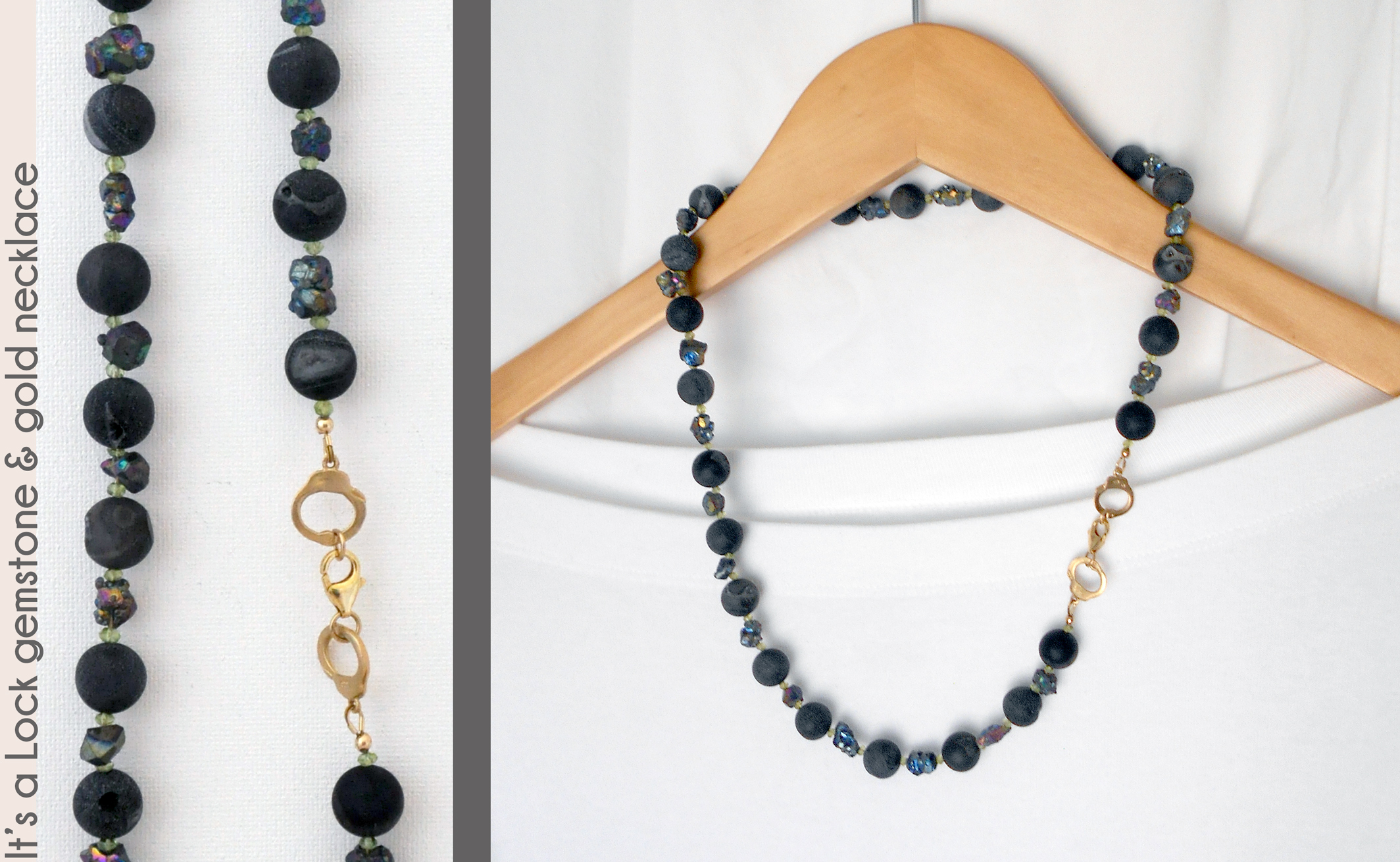 featuring a vermeil set of handcuffs and 14kt gold-fill lobster claw clasp. Druzy agate shows small crystals in