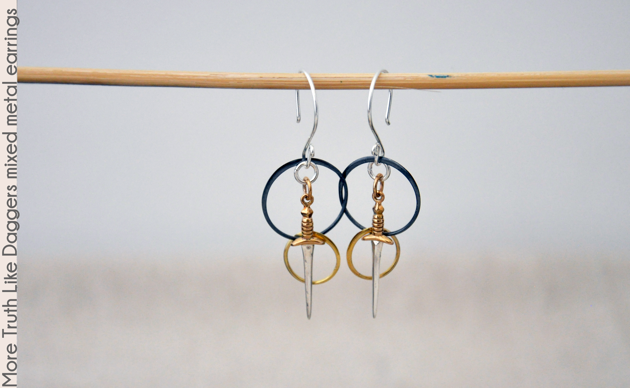 more symbolic as thin pointed bronze drops. The daggers in these earrings are less symbolic! Matching 1" mixed metal