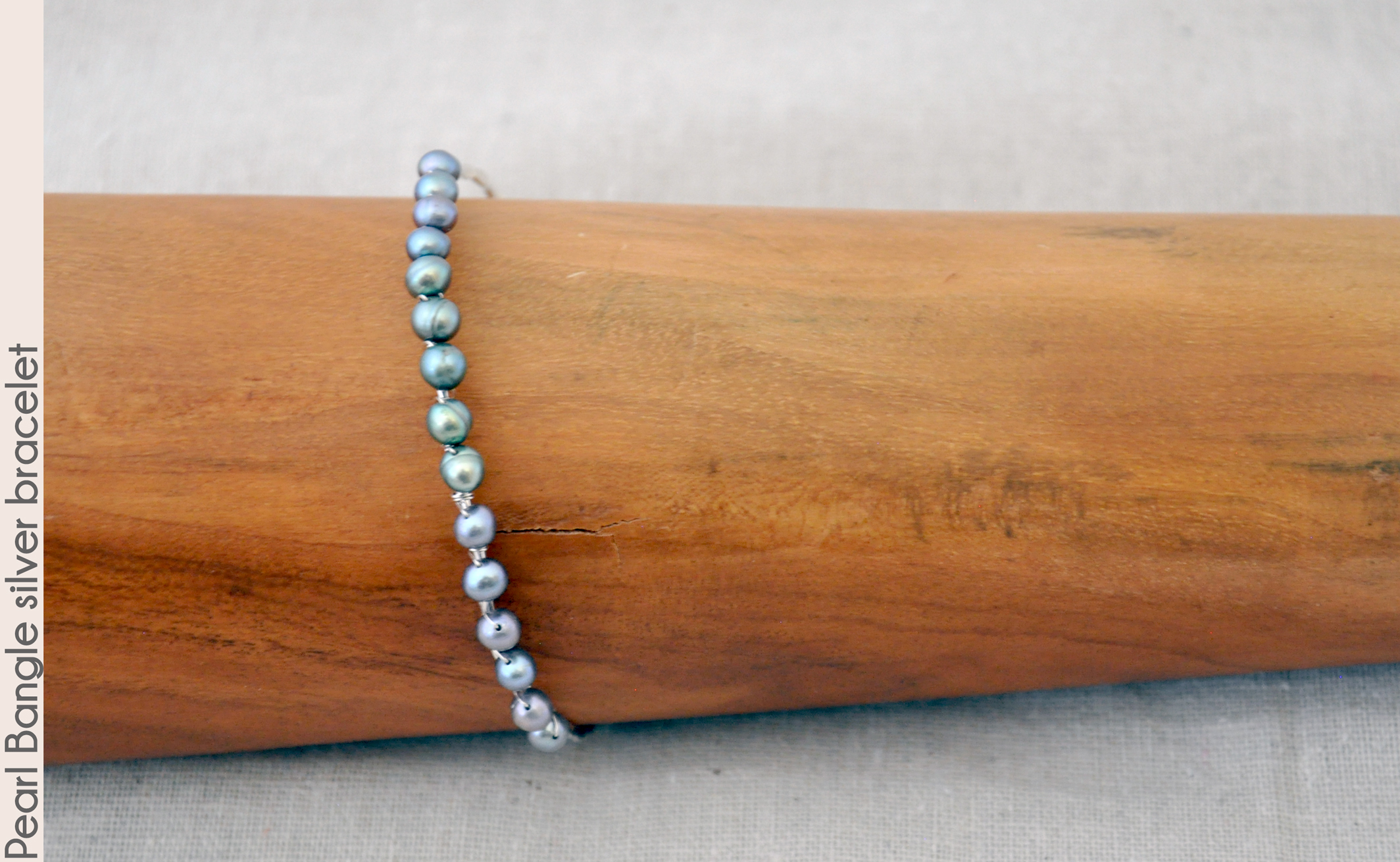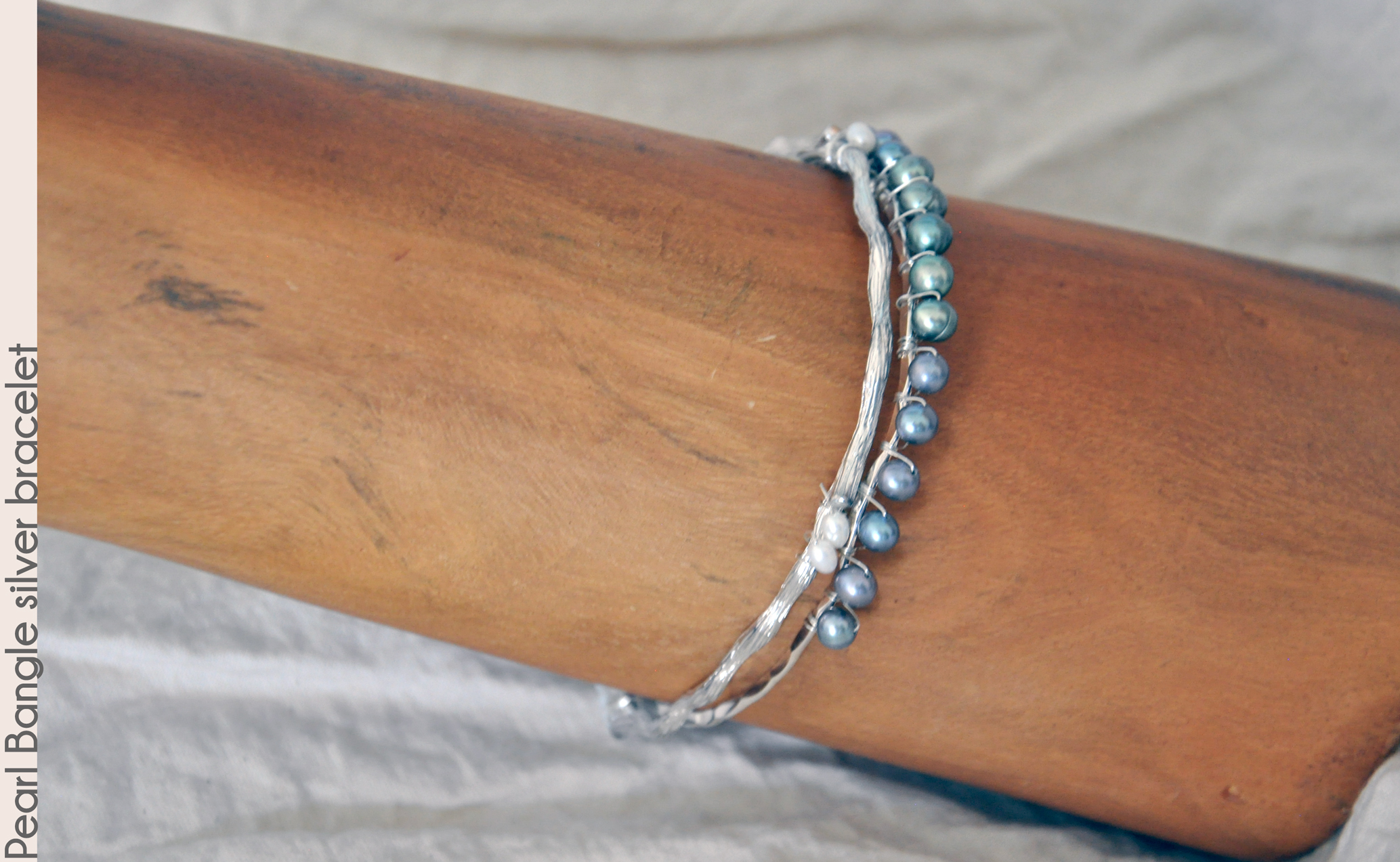 a 7" bracelet). The pearls are wrapped securely with sterling silver fill wire, and the bangle is moderate