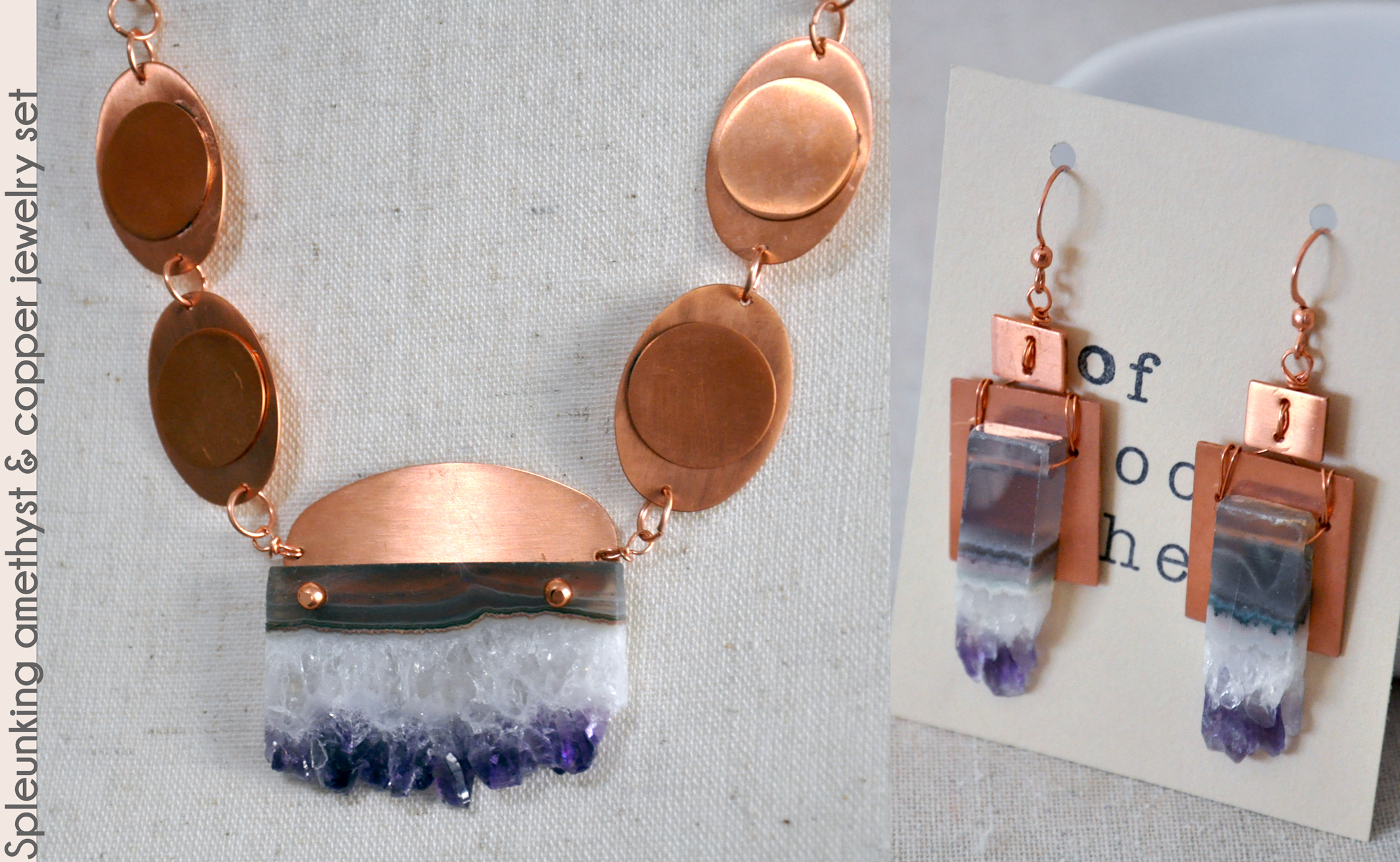 geodes in underground spaces. The 19" necklace features solid copper ovals with a bold gemstone pendant