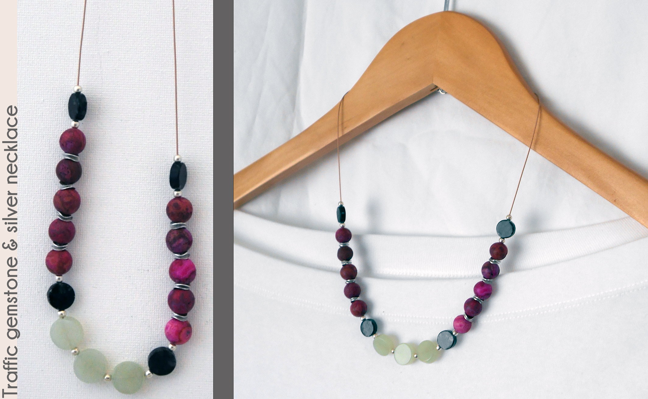 Go with the traffic flow in this 19" red/green necklace with brightly dyed crazy lace agate and cool