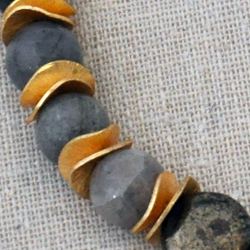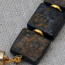 There's also yellow silk ribbon and dyed pearls or wood, though I find the dyed yellow materials