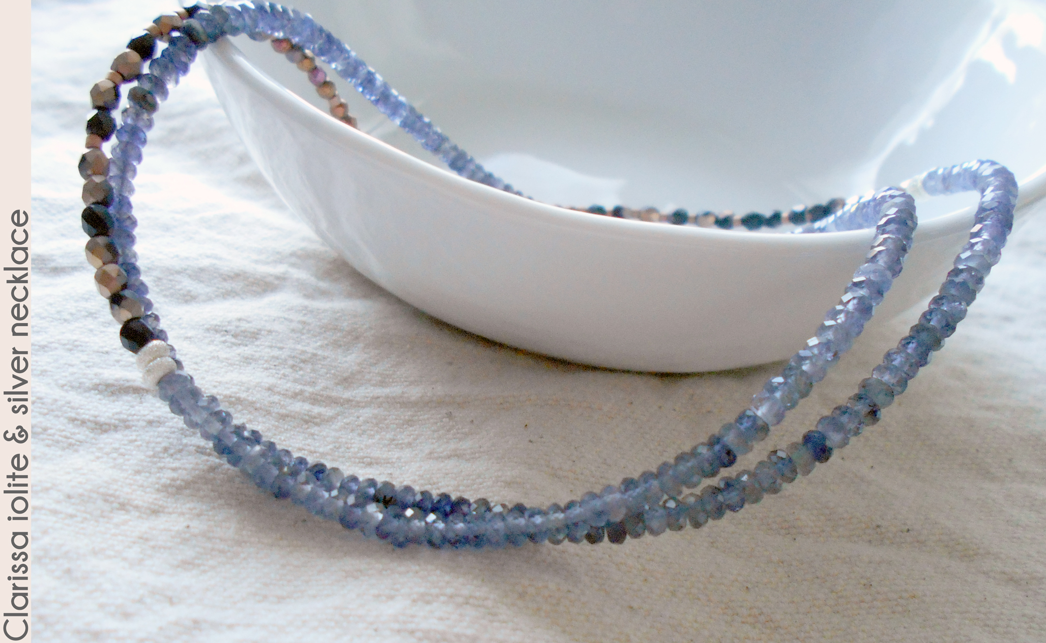 a small sterling silver toggle. Iolite is also called "water sapphire" for its color. Like Clarissa Dalloway,