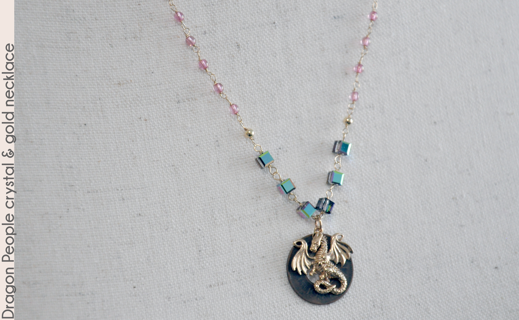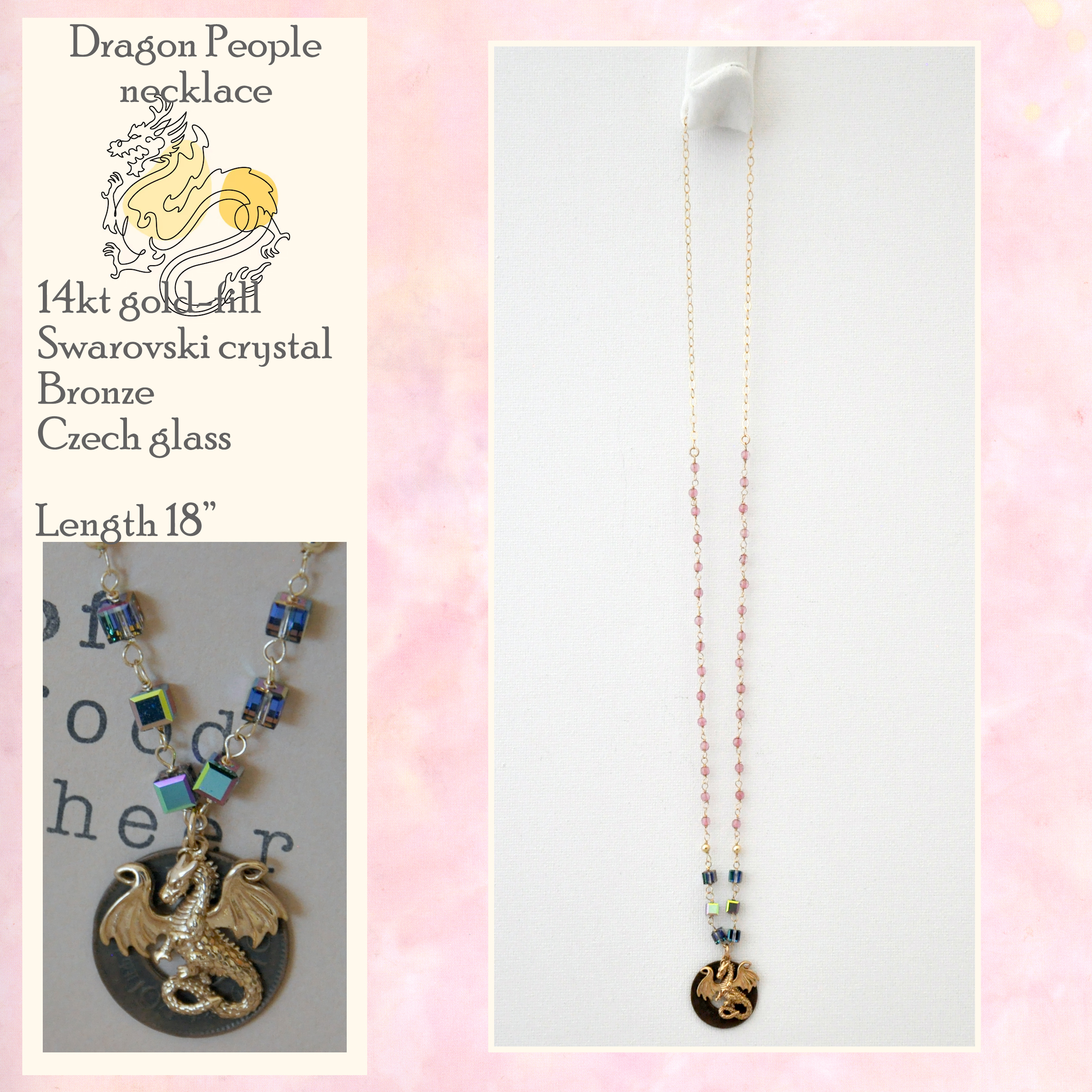 wood element. This 18" golden necklace features a fierce bronze dragon and old Indian coin pendant hanging from