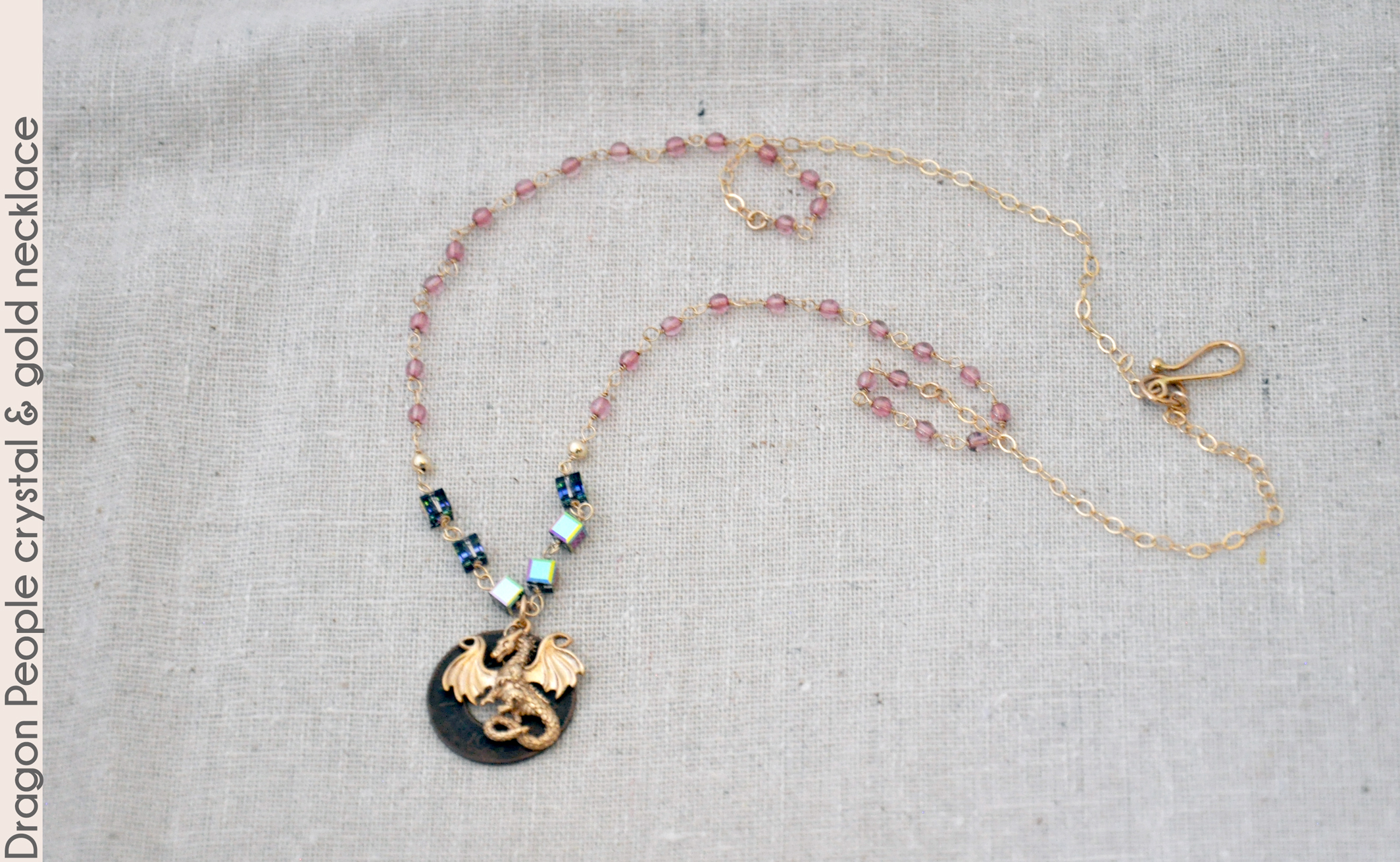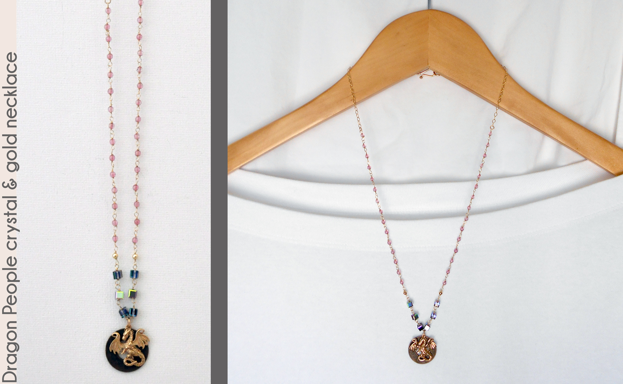 shimmering Swarovski crystal beads and Czech glass beads wrapped with fine gold-fill wire. These are attached to