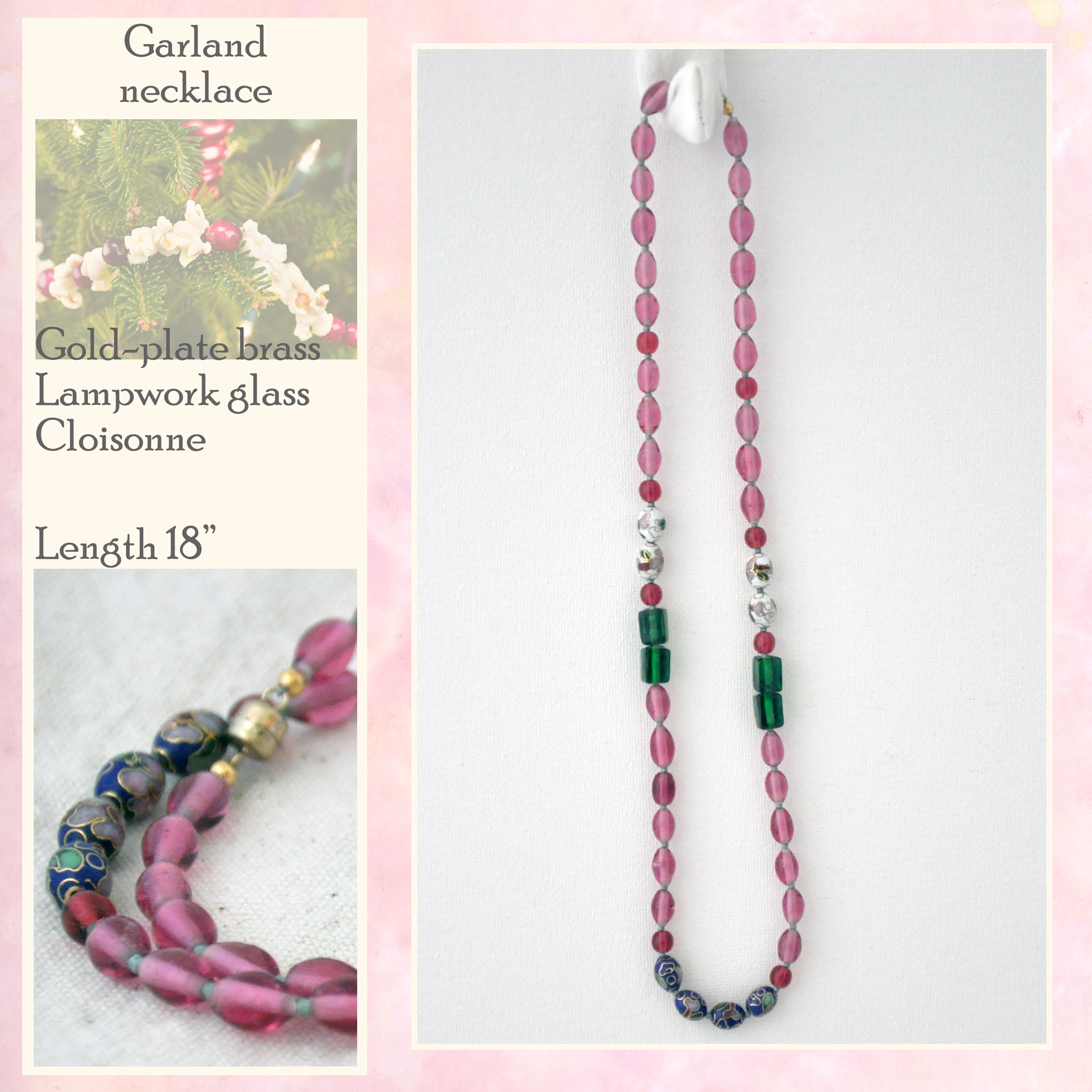 This 18" necklace has the color and textures of the winter holidays, with garlands of berries and gleaming