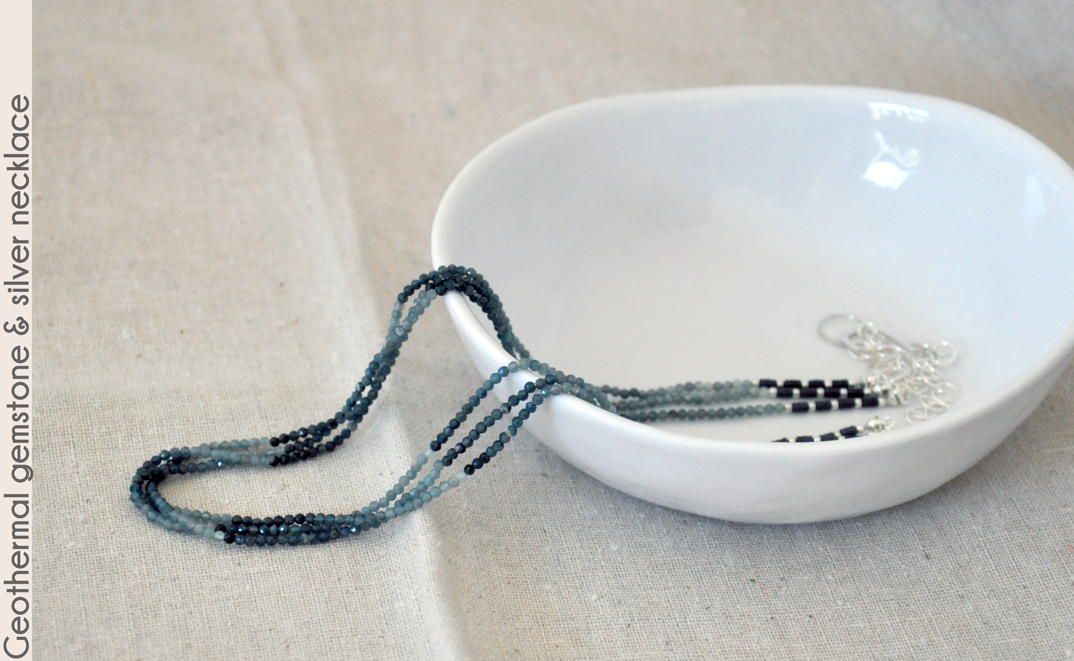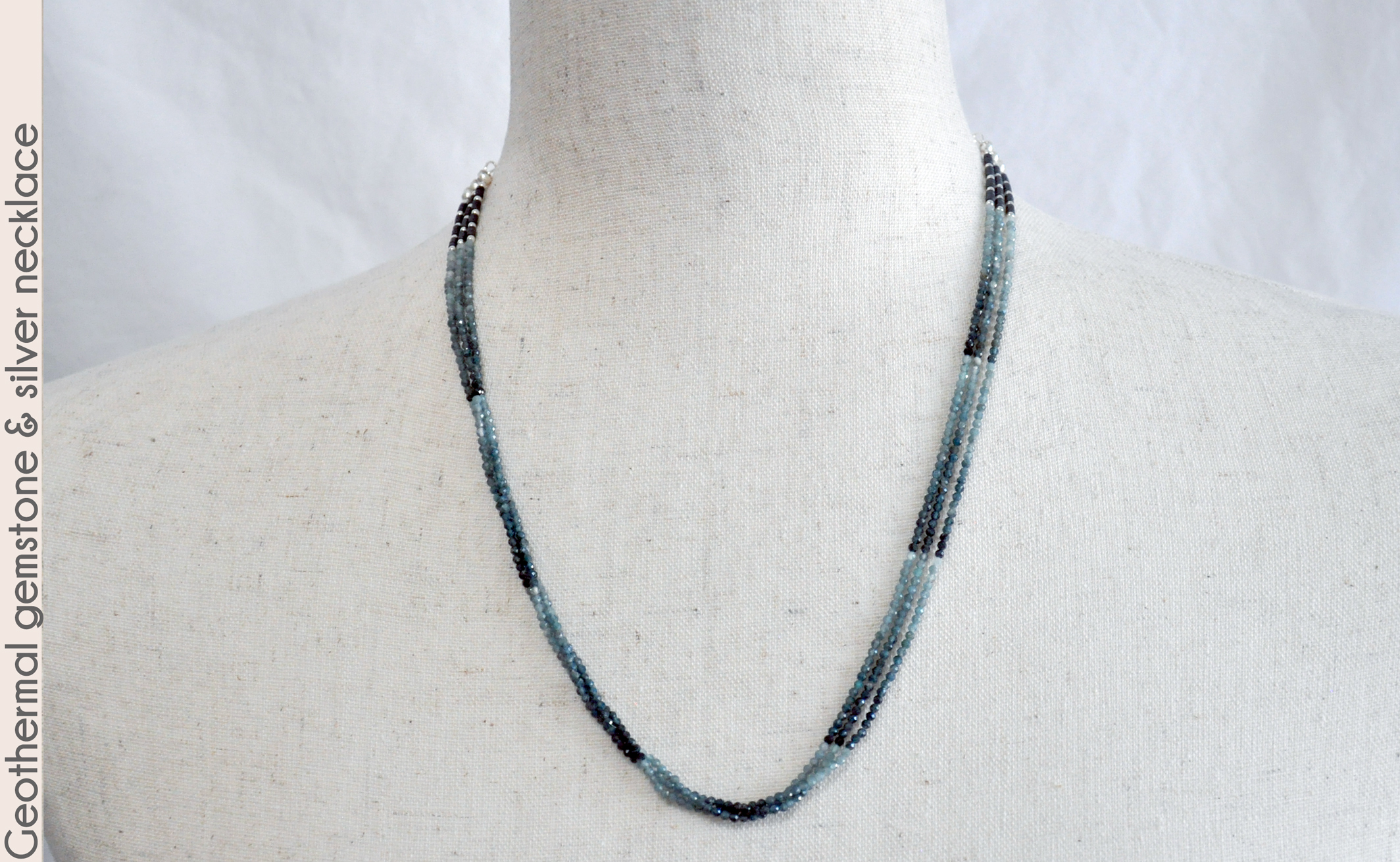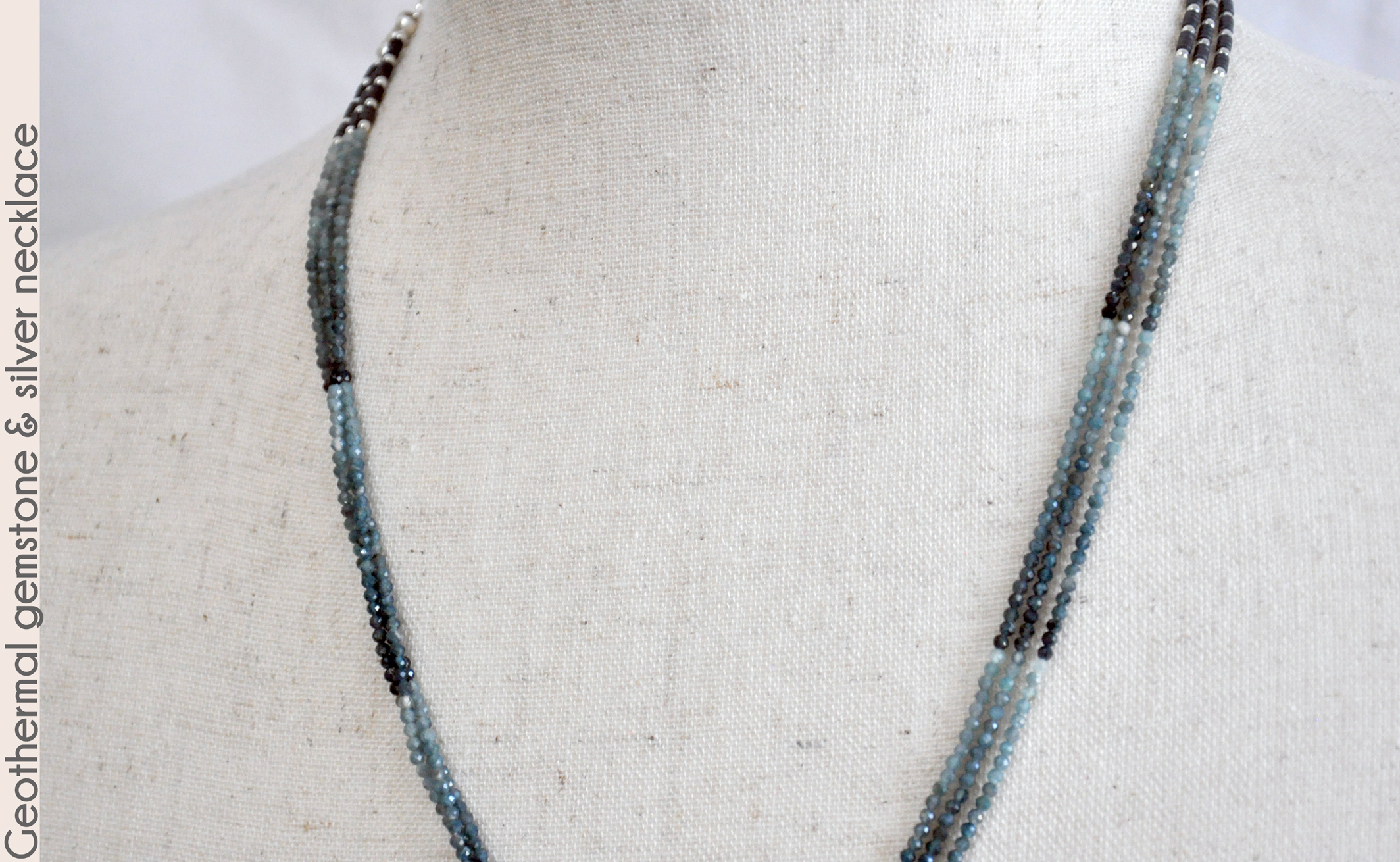 in this 19" necklace that has steely blue-green coloring like those steaming pools.
