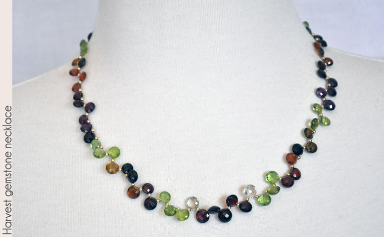 necklace includes some of the most well known and popular semi-precious gemstones: garnet, peridot,