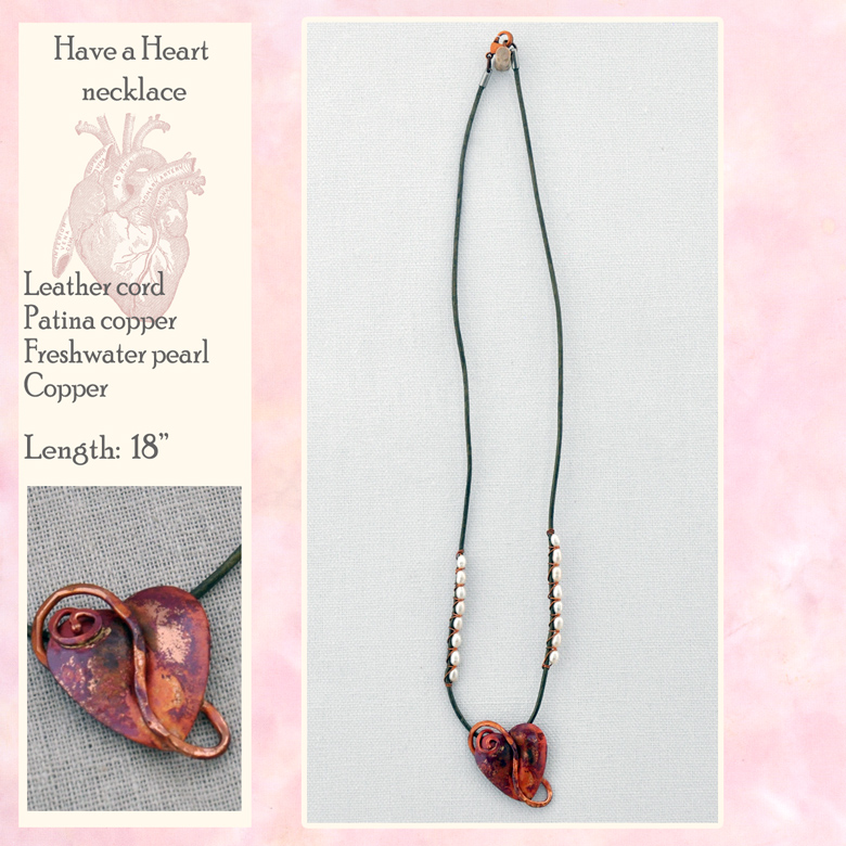 rustic charm and quality workmanship. This 18" necklace features one of her heart pendants