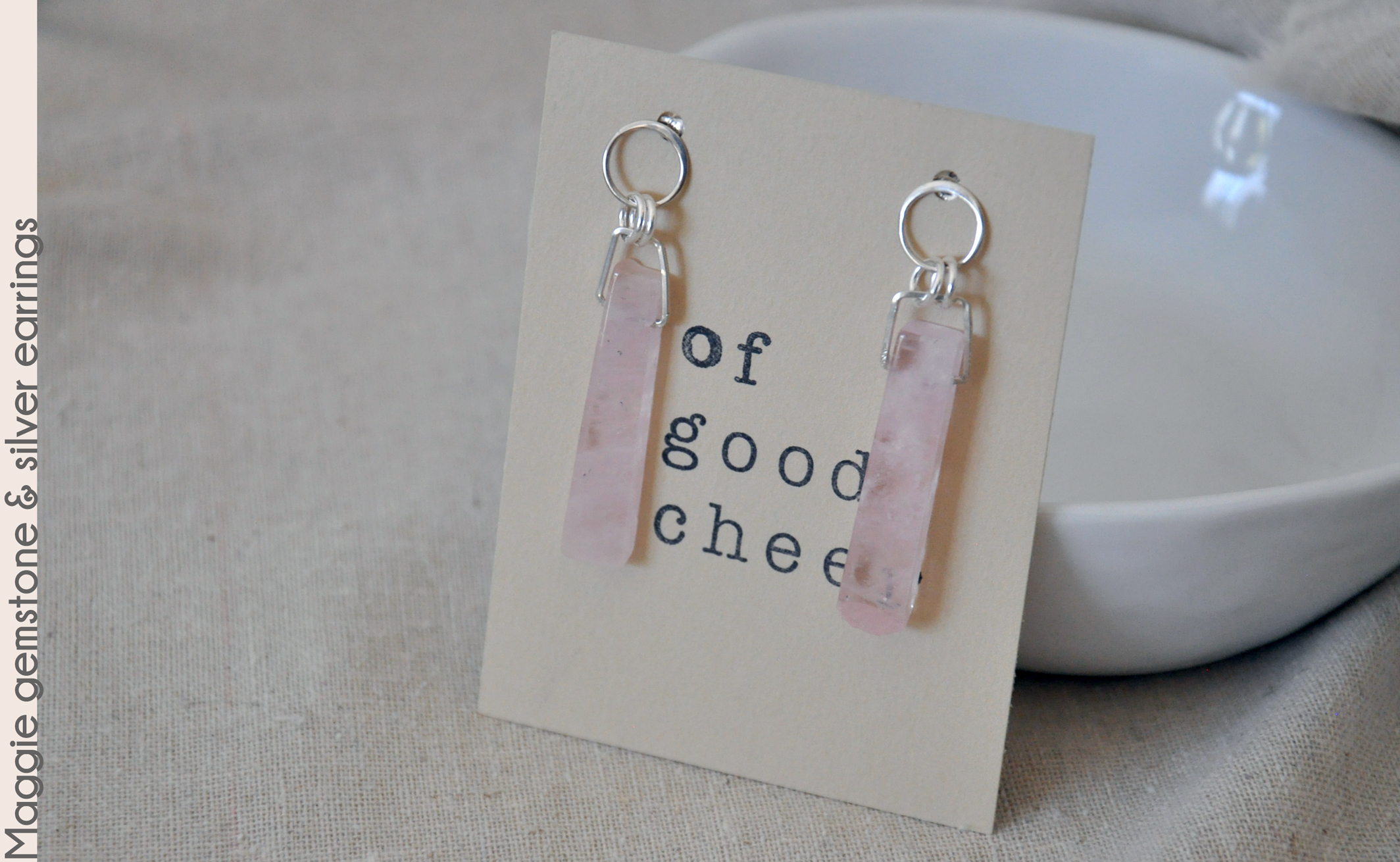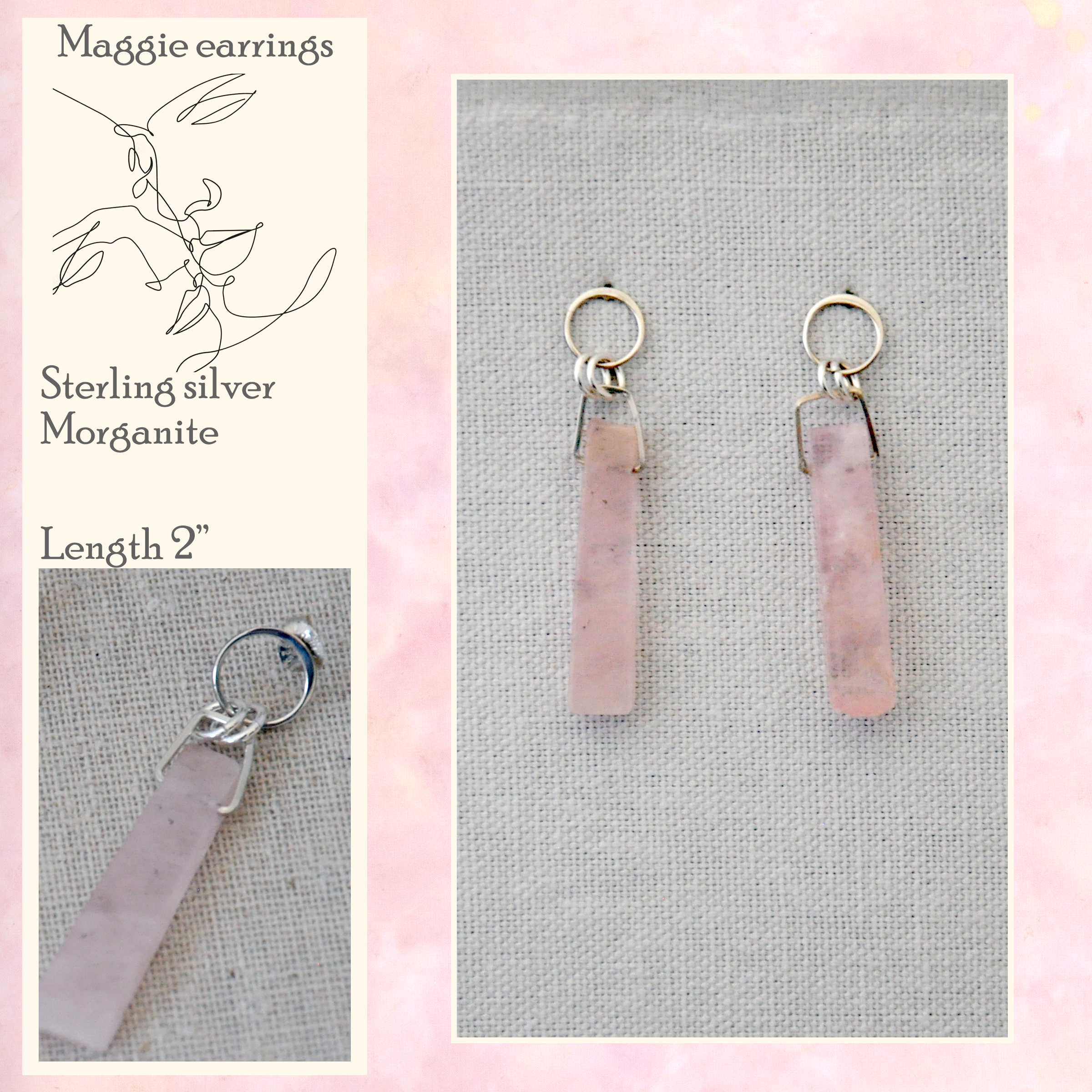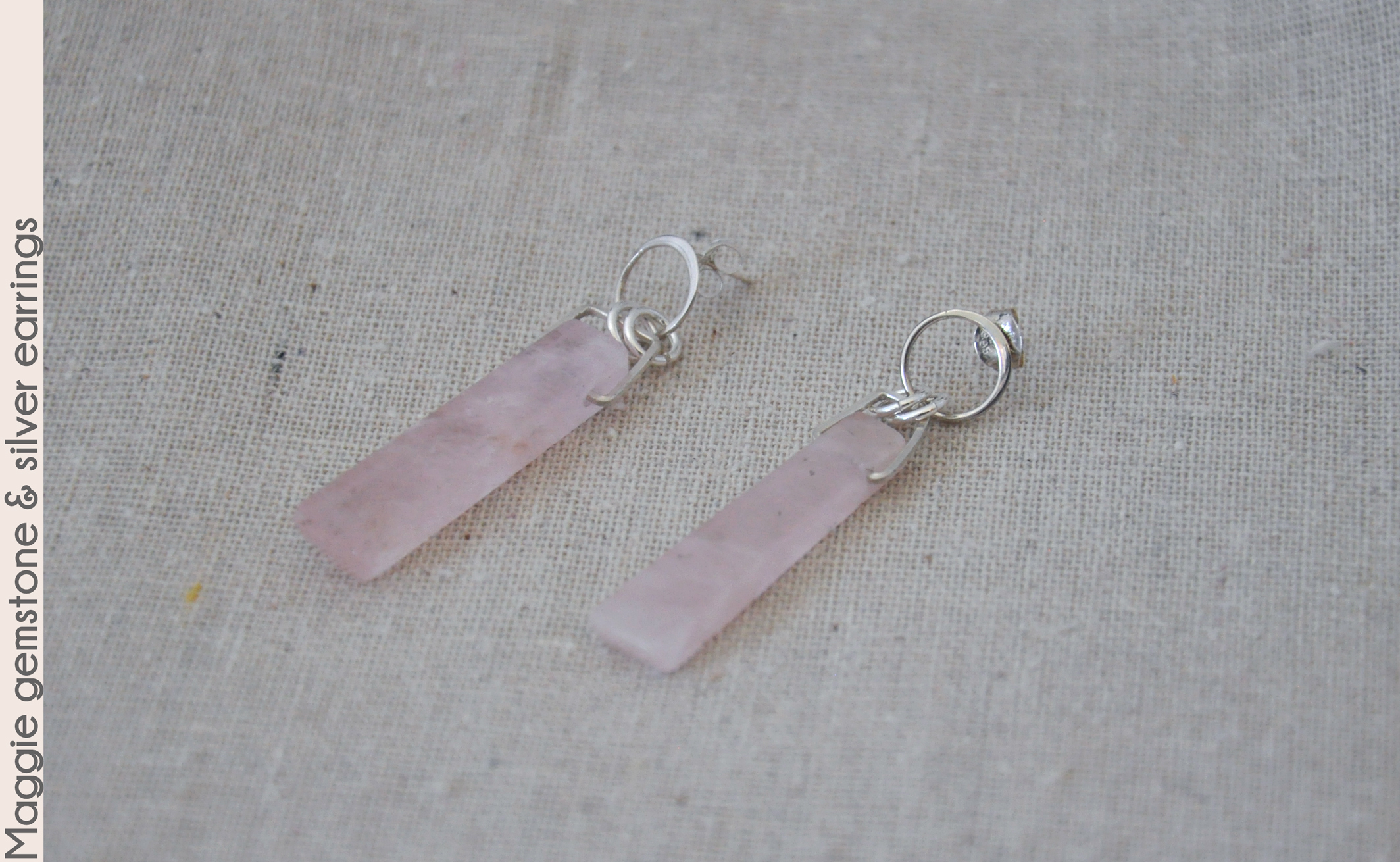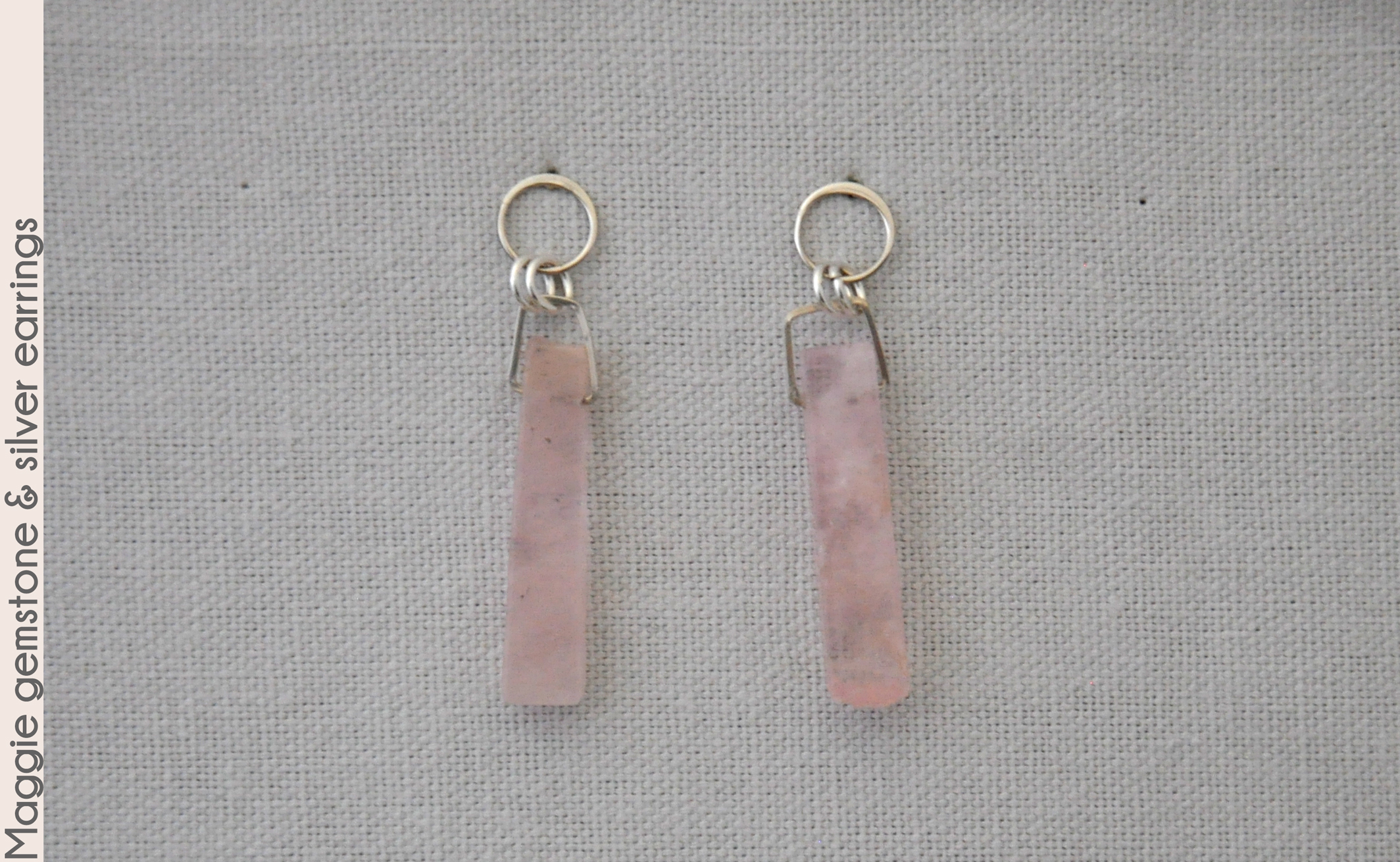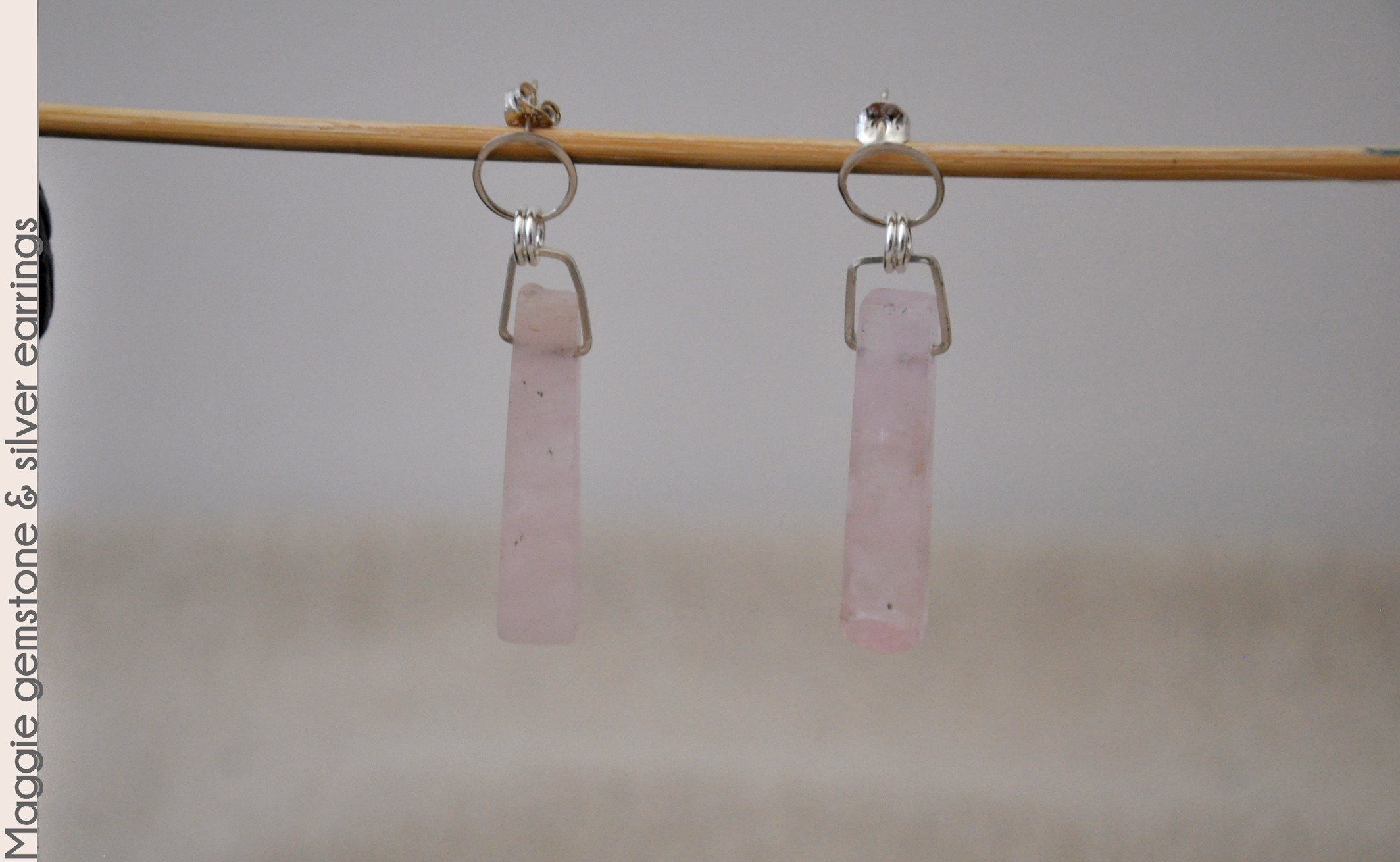morganite rectangle gemstones with sterling silver wires and open circle post studs. Morganite