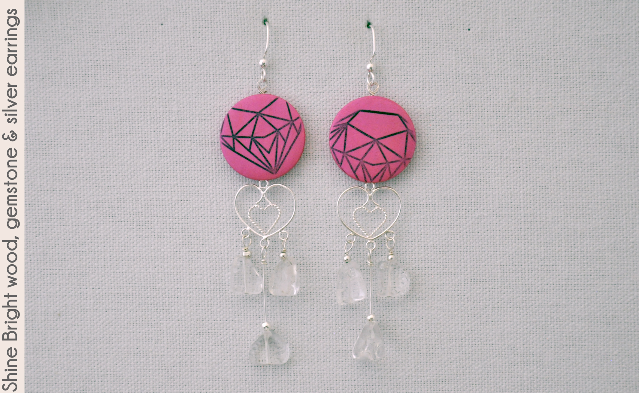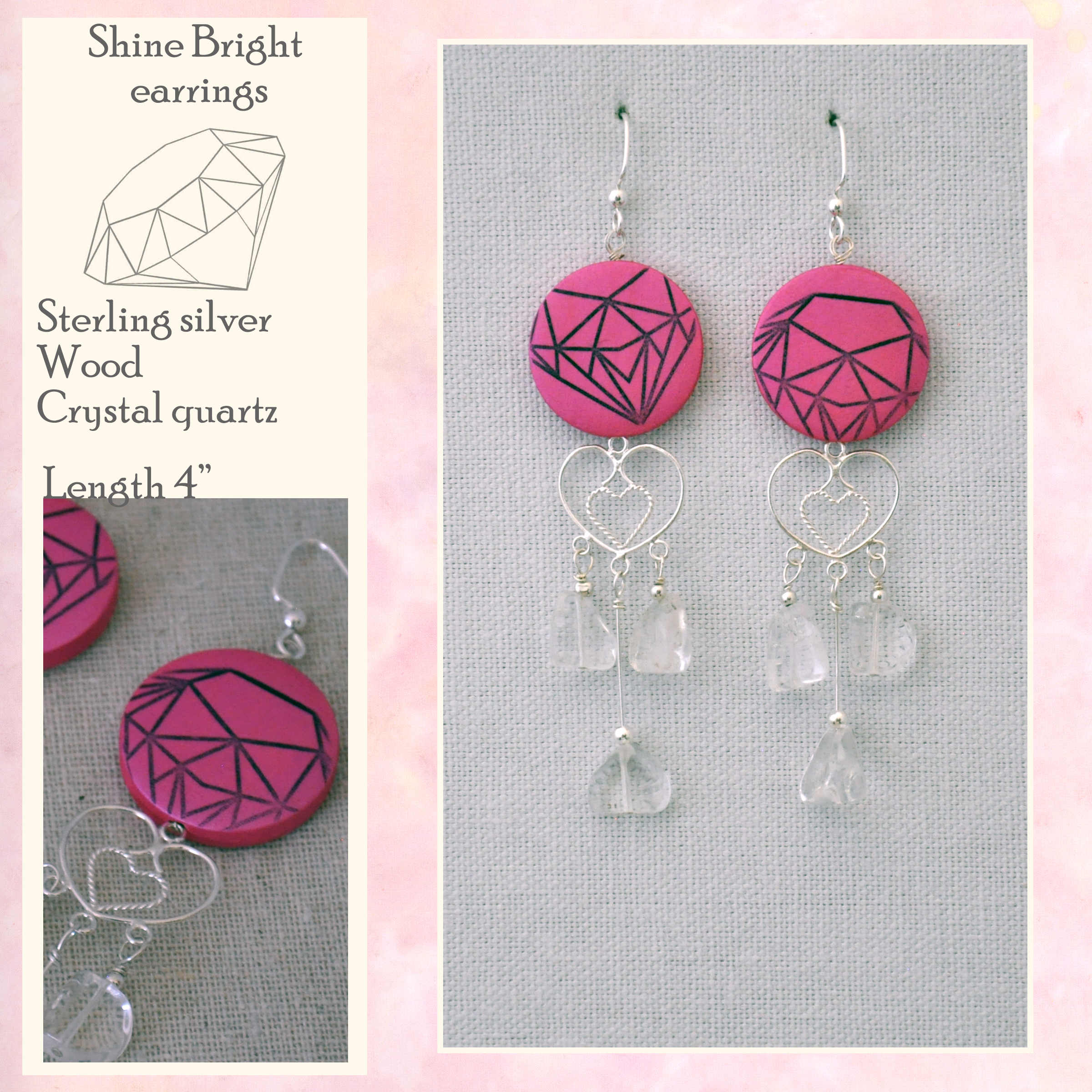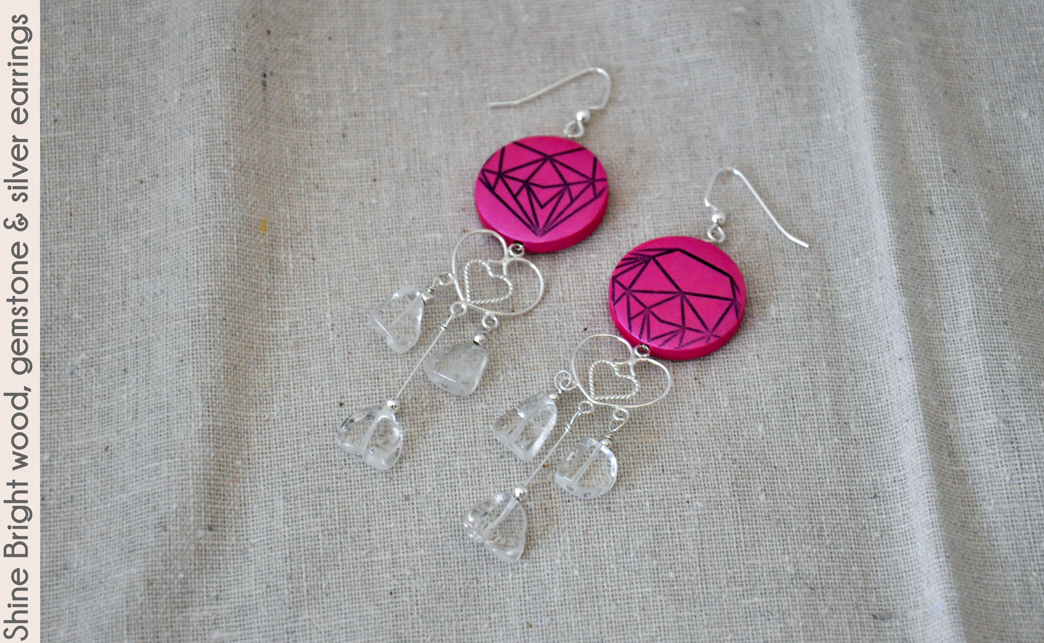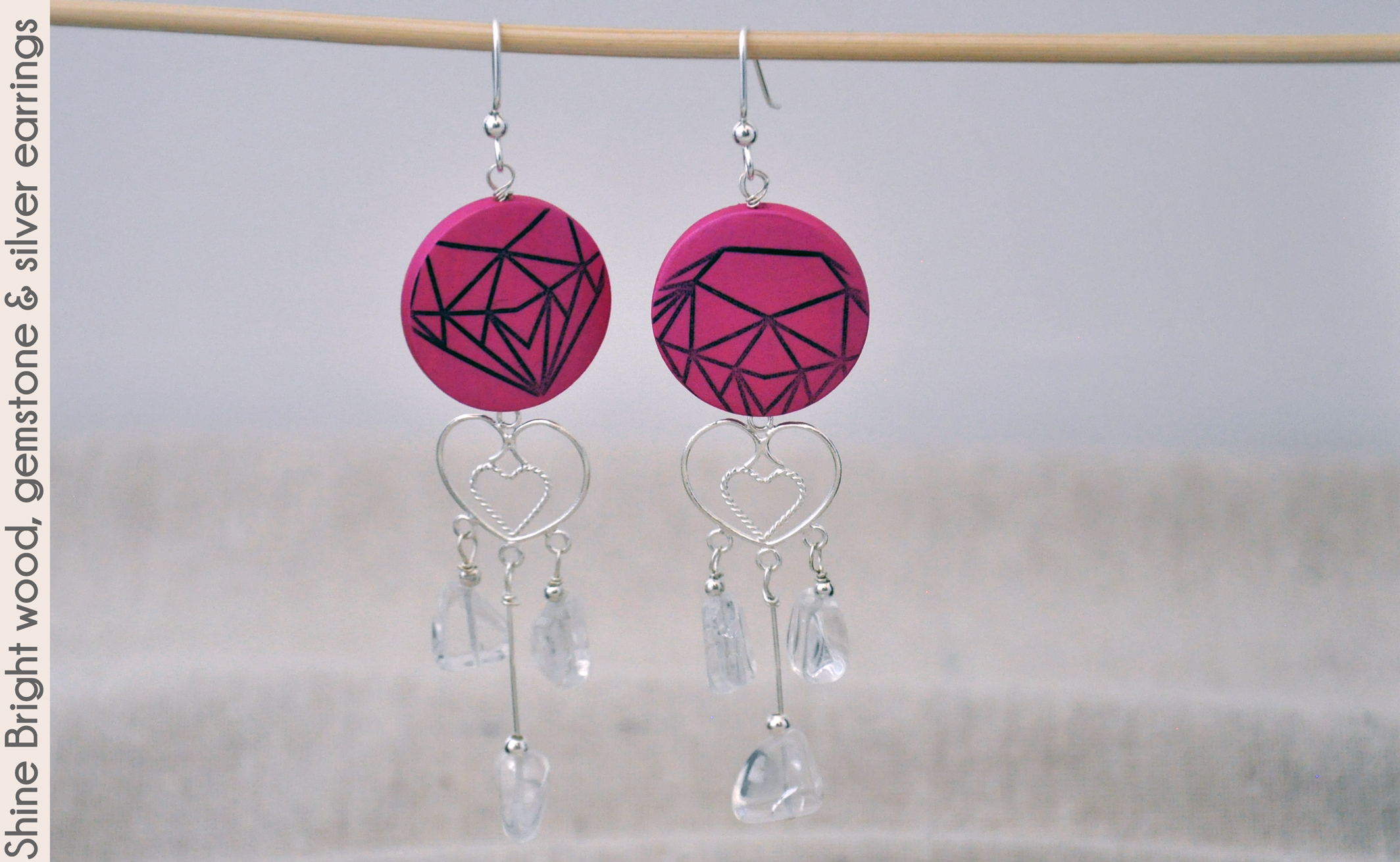 Shine bright with these light-filled 4" drop earrings of intense magenta and silver-white color.