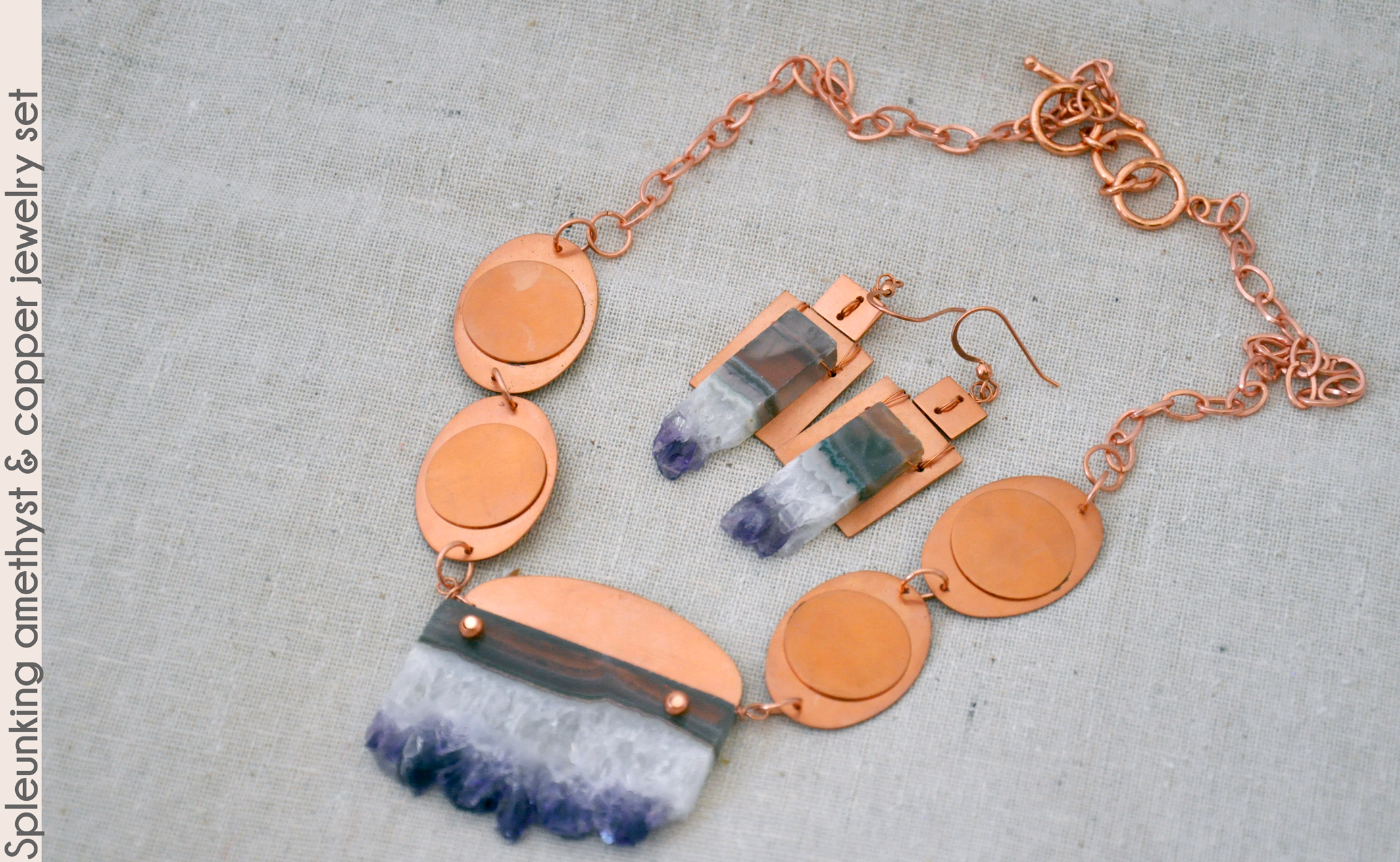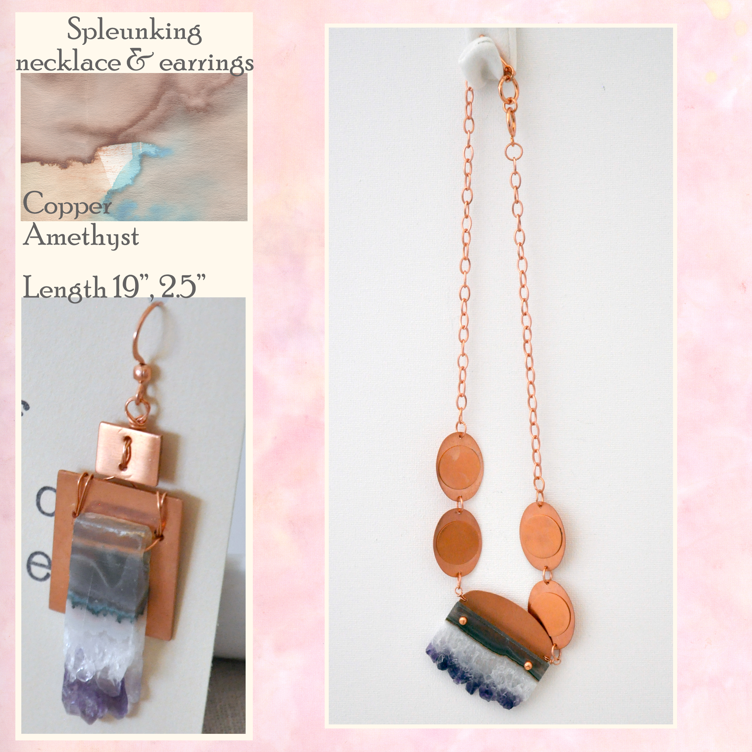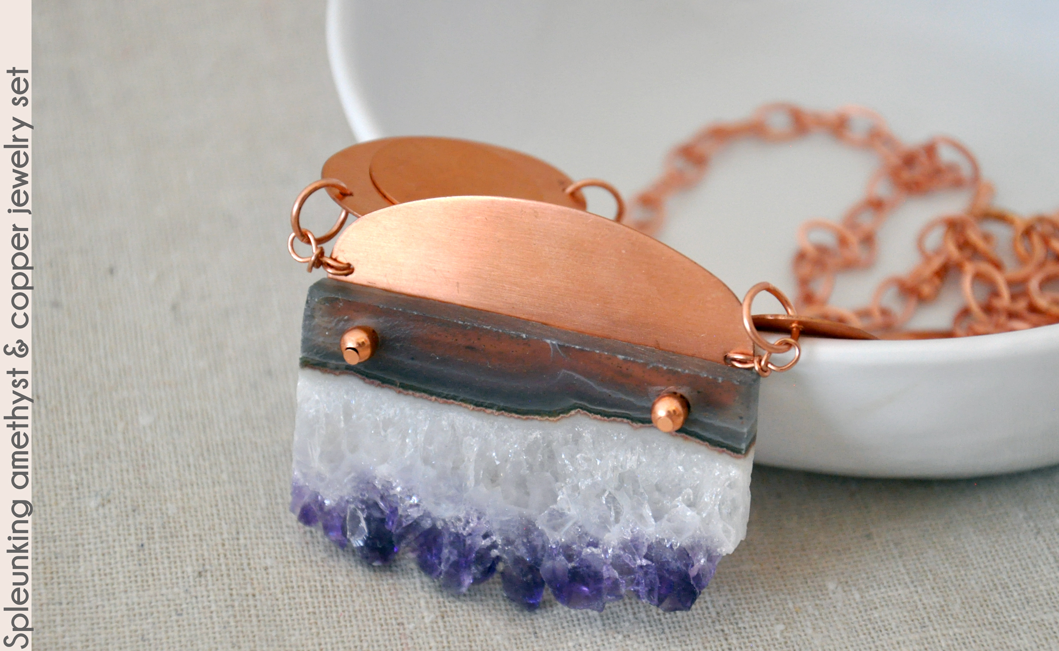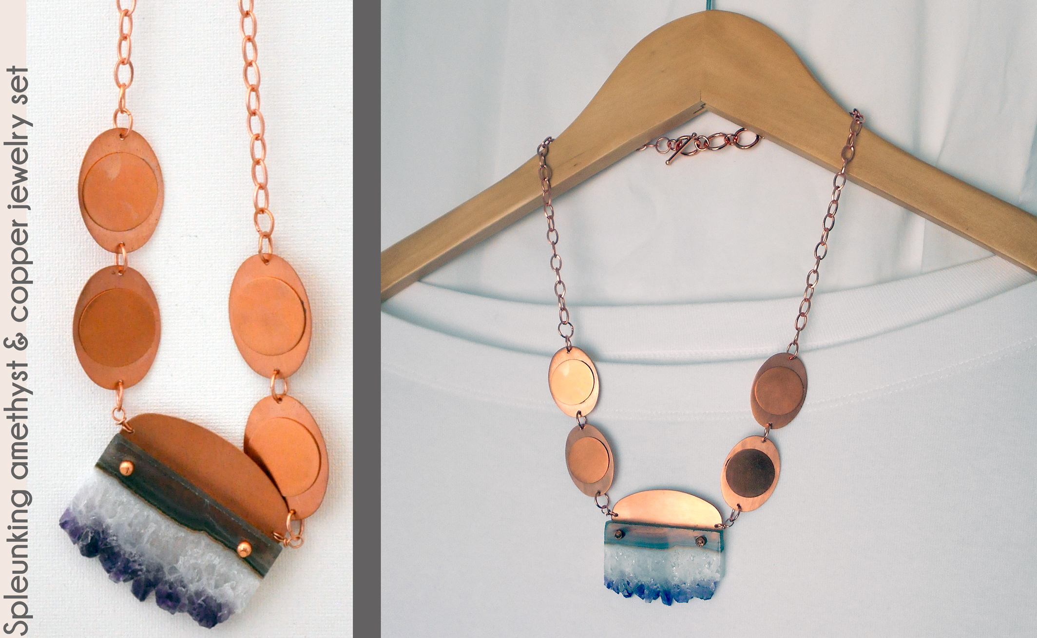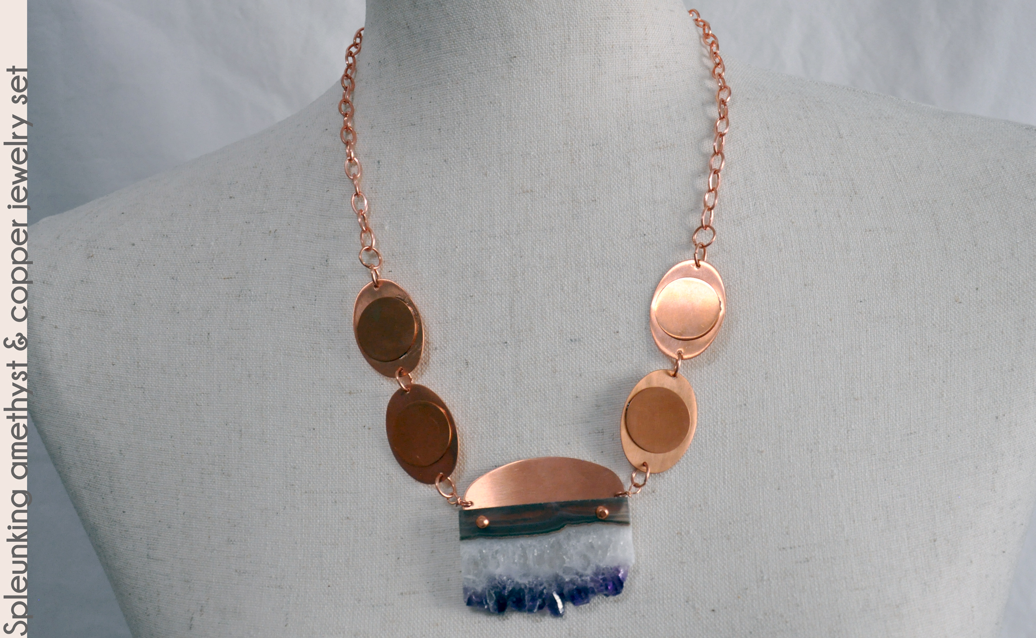 geodes in underground spaces. The 19" necklace features solid copper ovals with a bold gemstone pendant