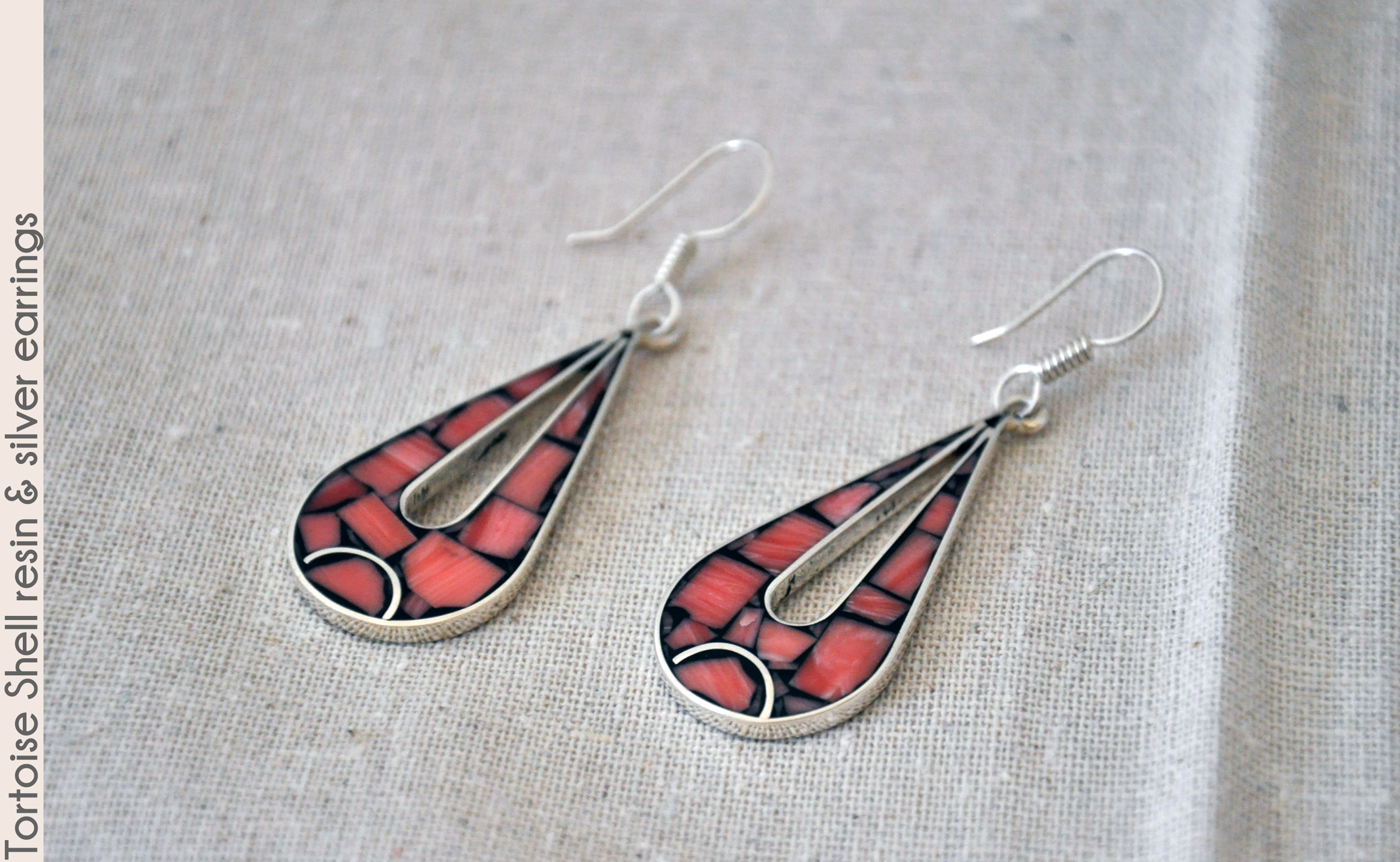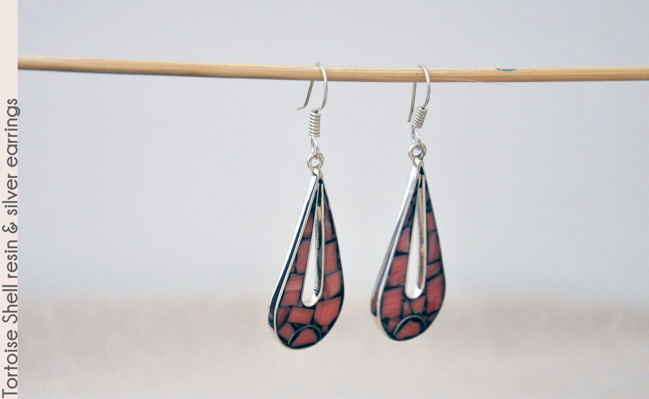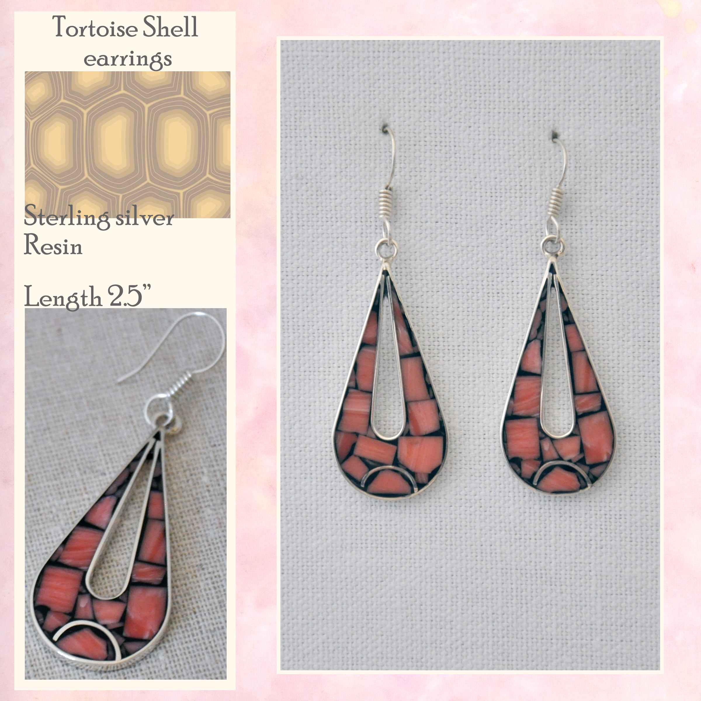 The resin pattern inset in these sterling silver 2.5" drop earrings isn't quite tortoise shell, but it