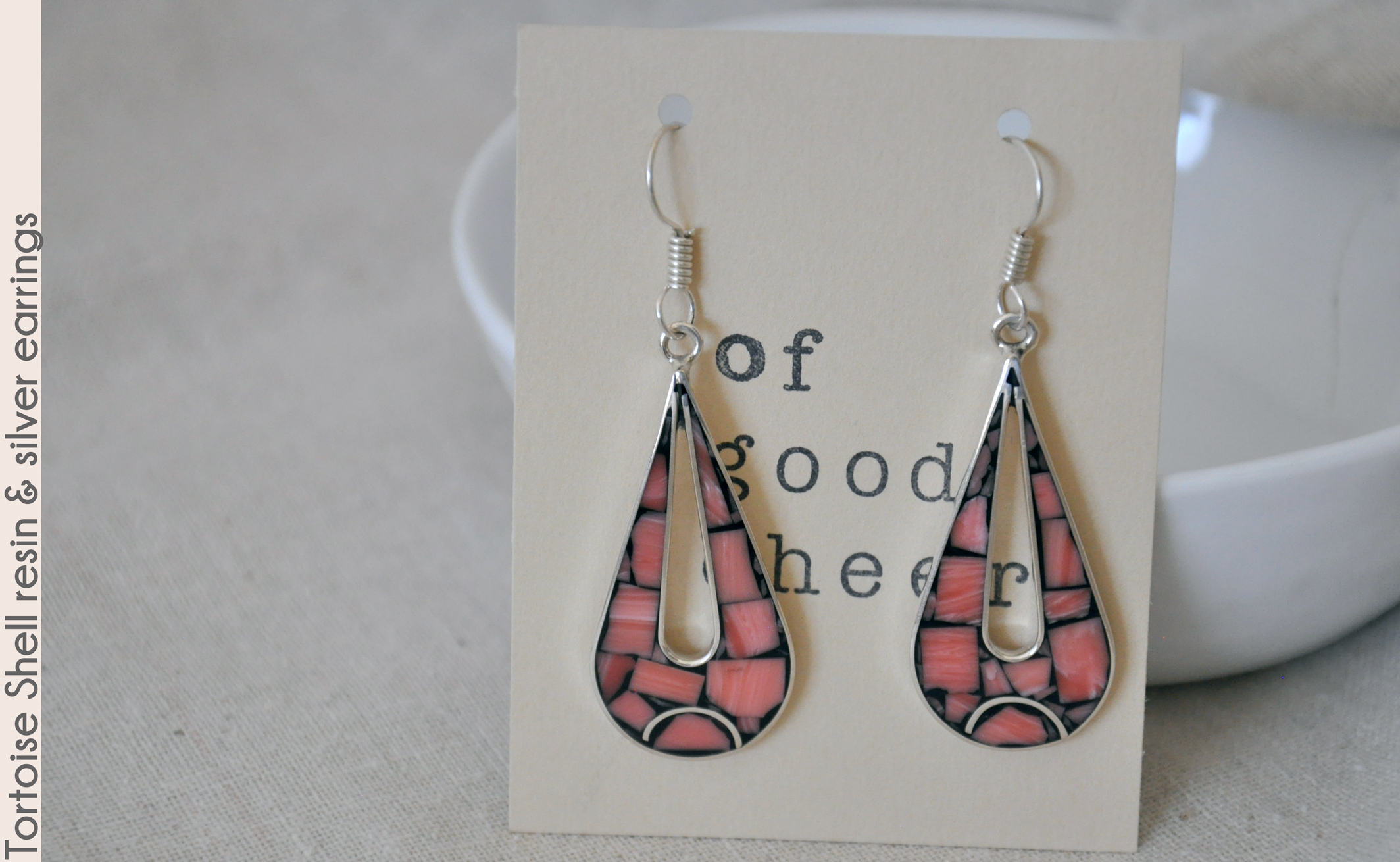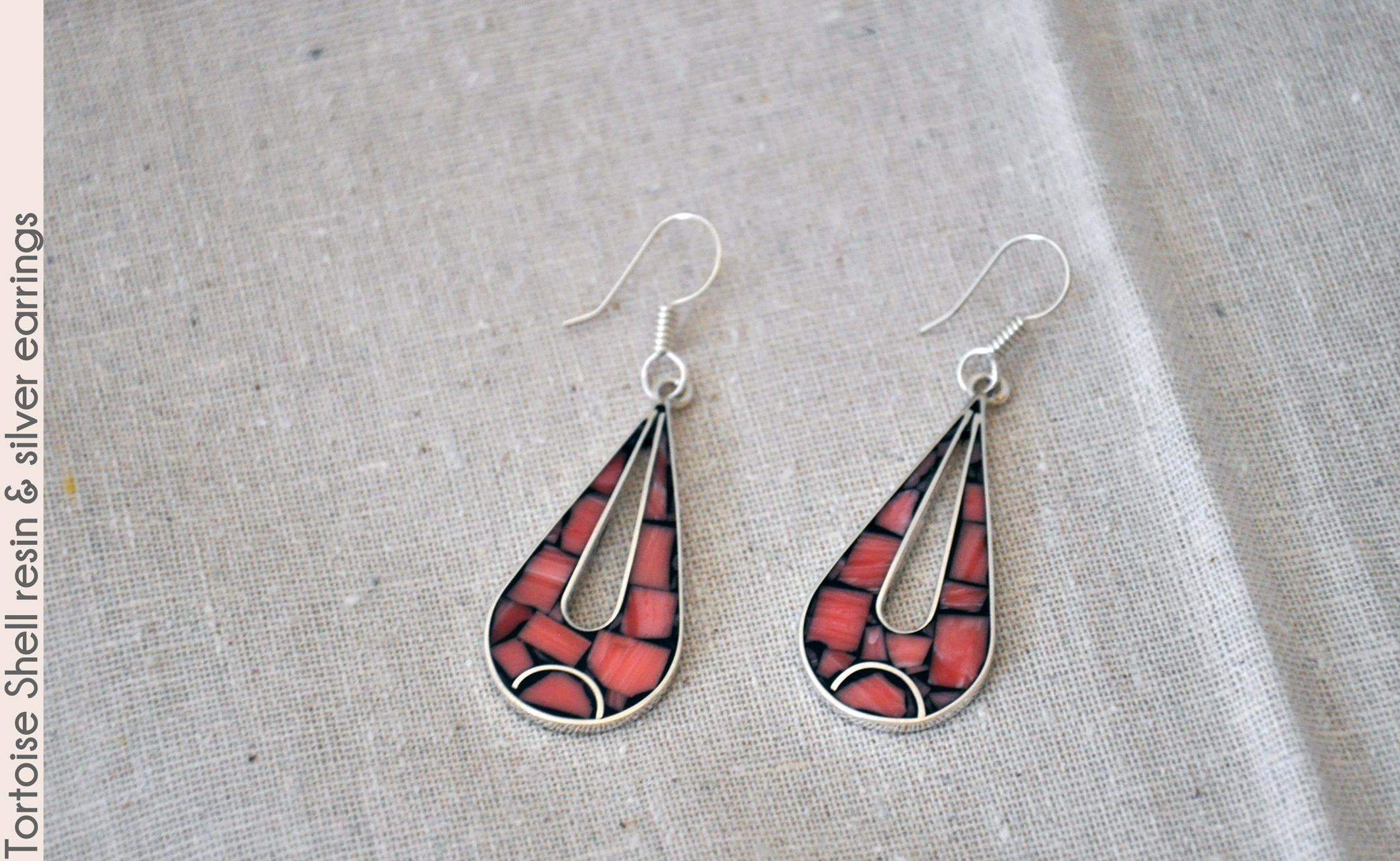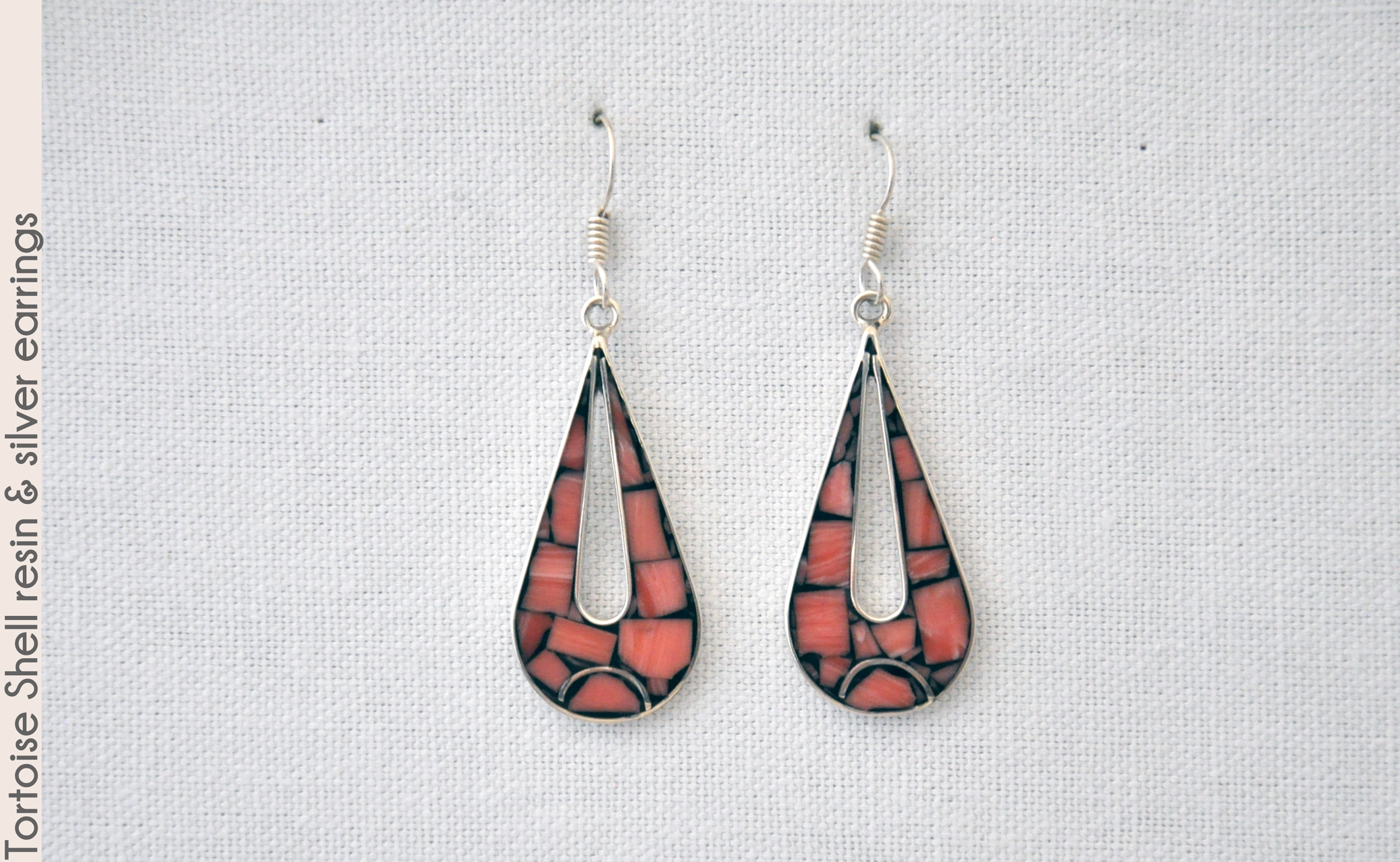 The resin pattern inset in these sterling silver 2.5" drop earrings isn't quite tortoise shell, but it