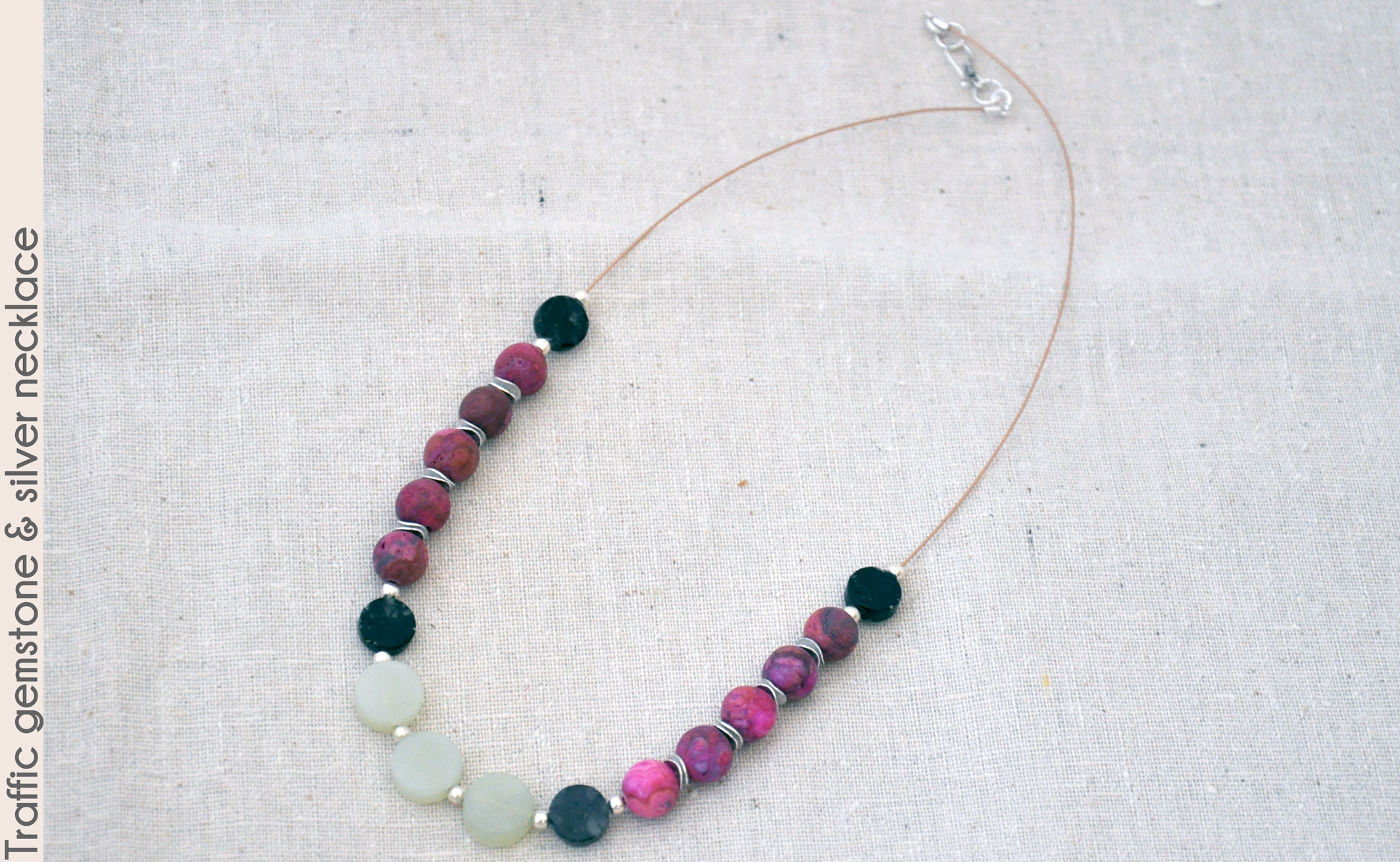 Go with the traffic flow in this 19" red/green necklace with brightly dyed crazy lace agate and cool